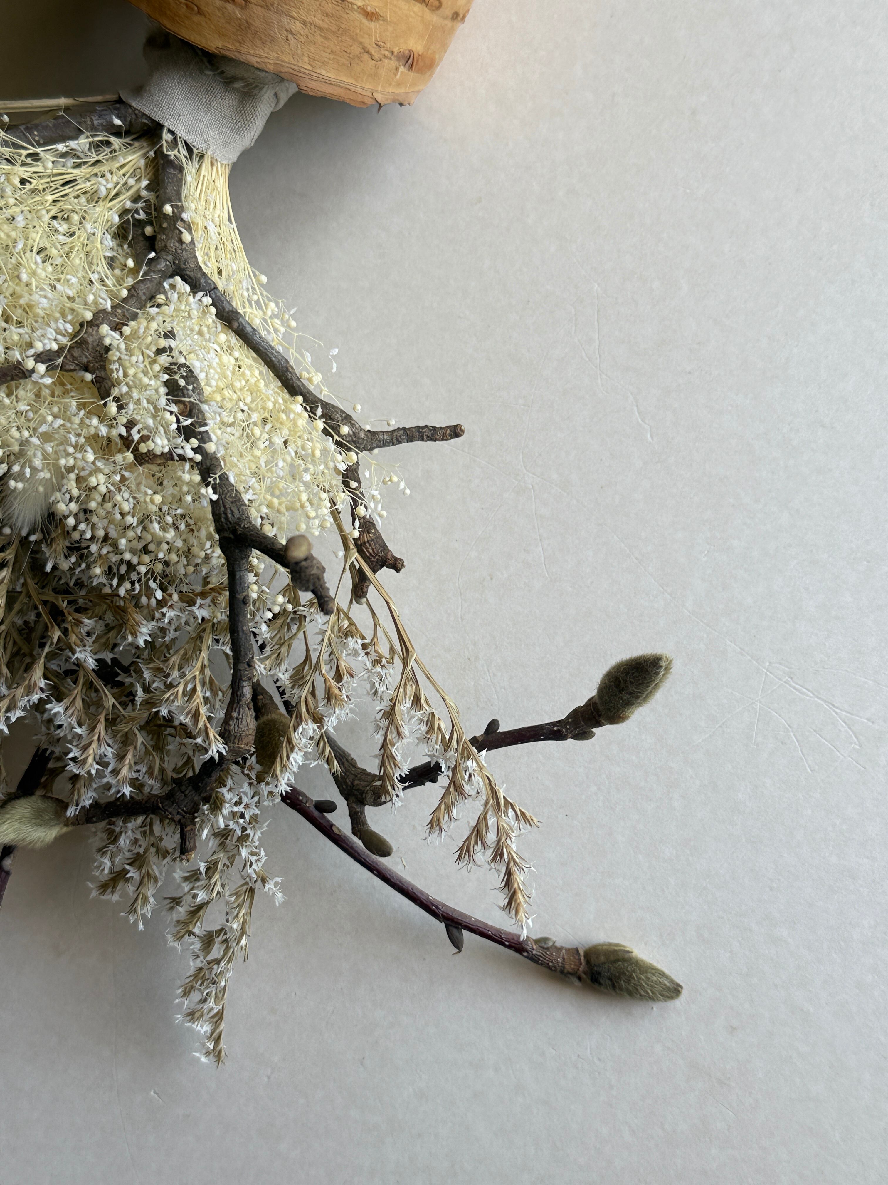 クロワッサンの様な白樺の樹皮が付いた枝物スワッグです