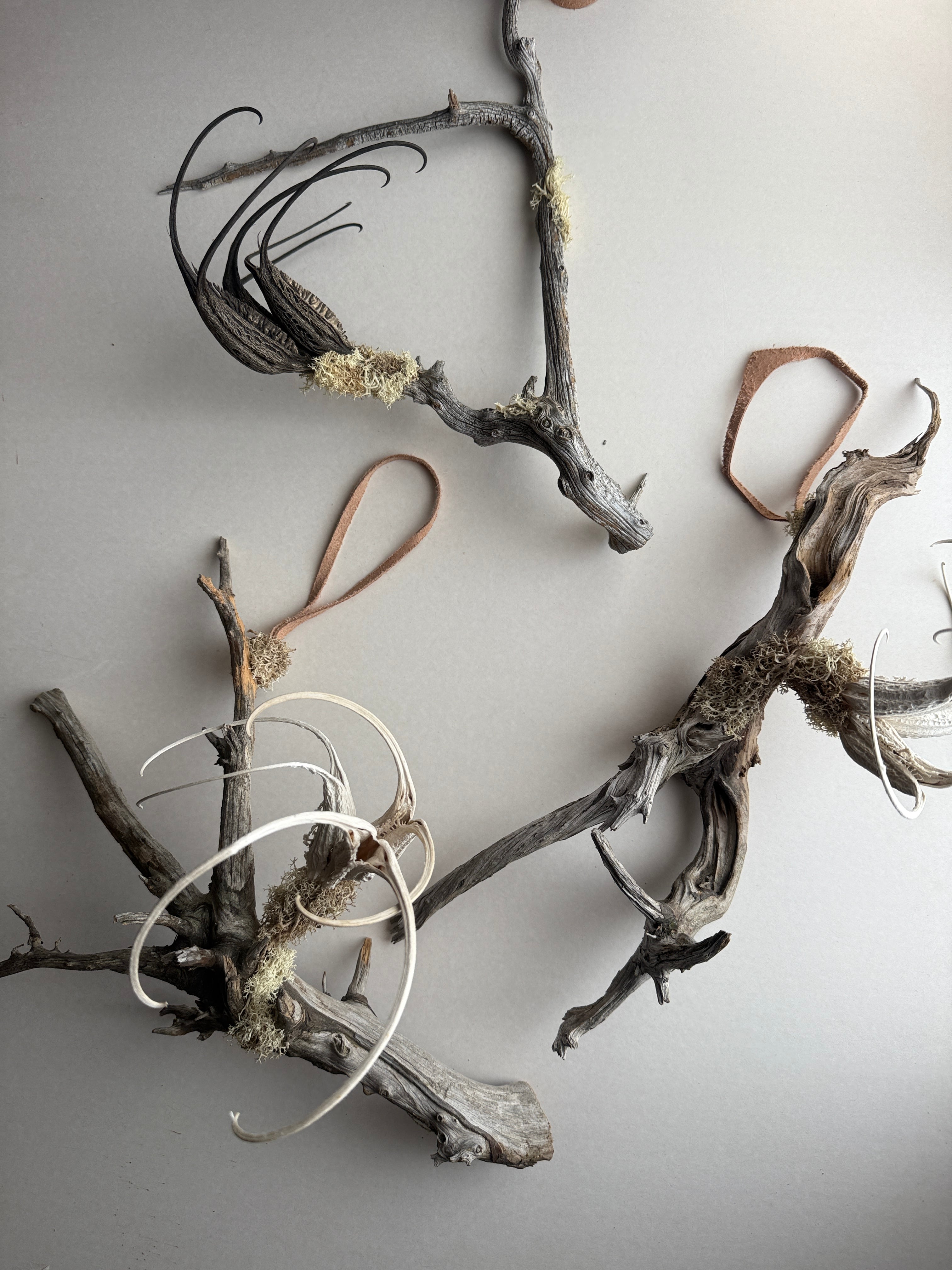 ラフイユオリジナルの一点物の流木を使った壁にかけれる植物です