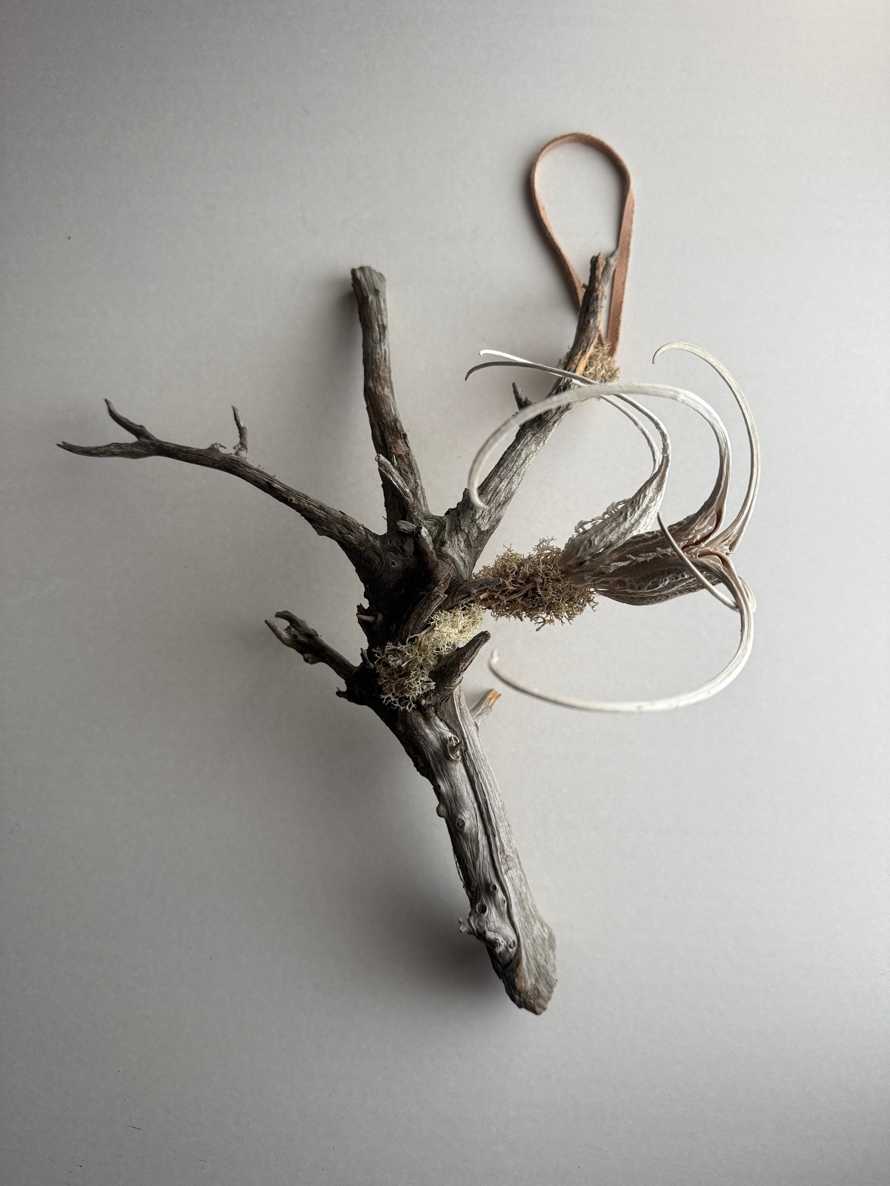 ラフイユオリジナルの一点物の流木を使った壁にかけれる植物です