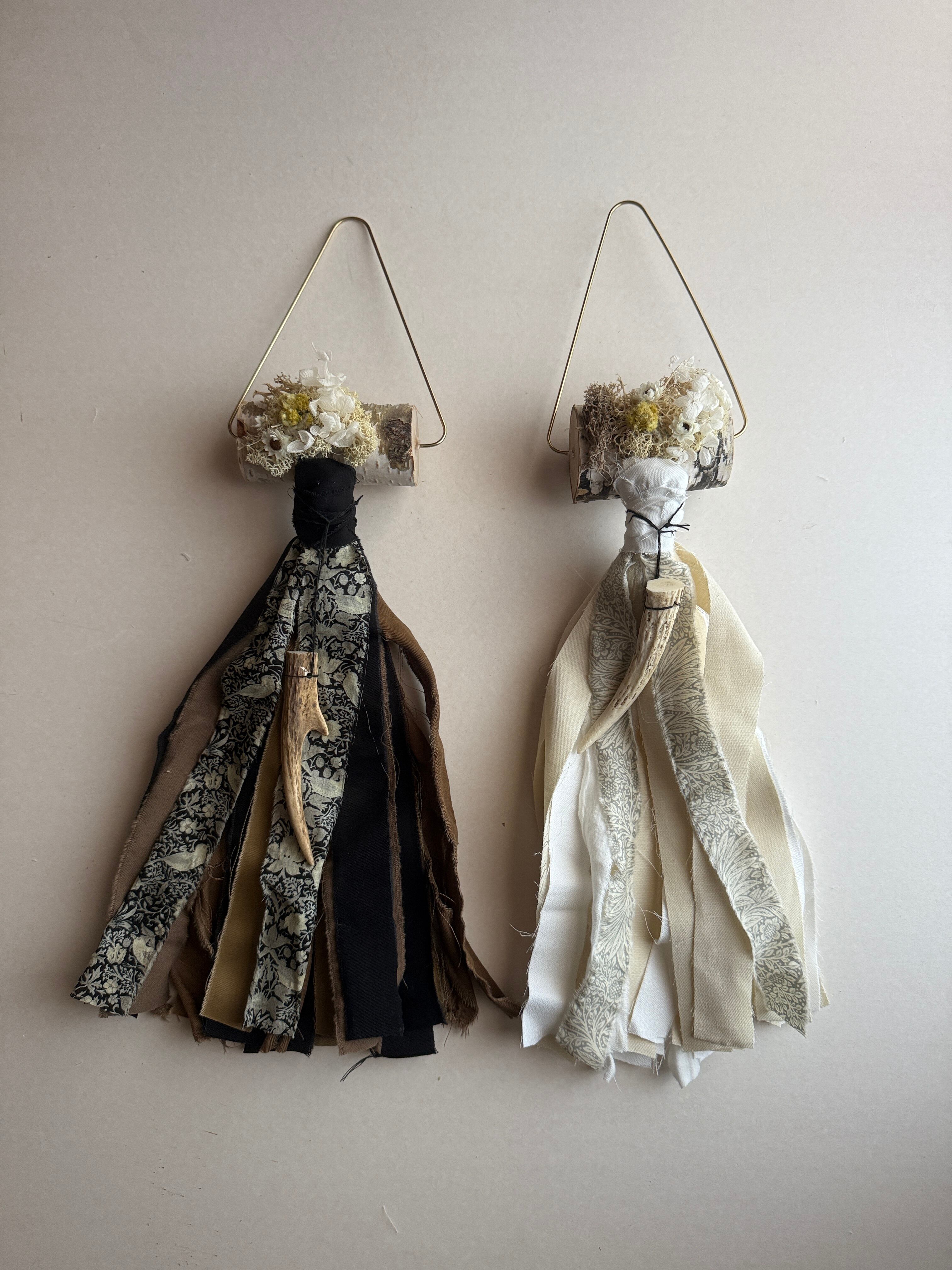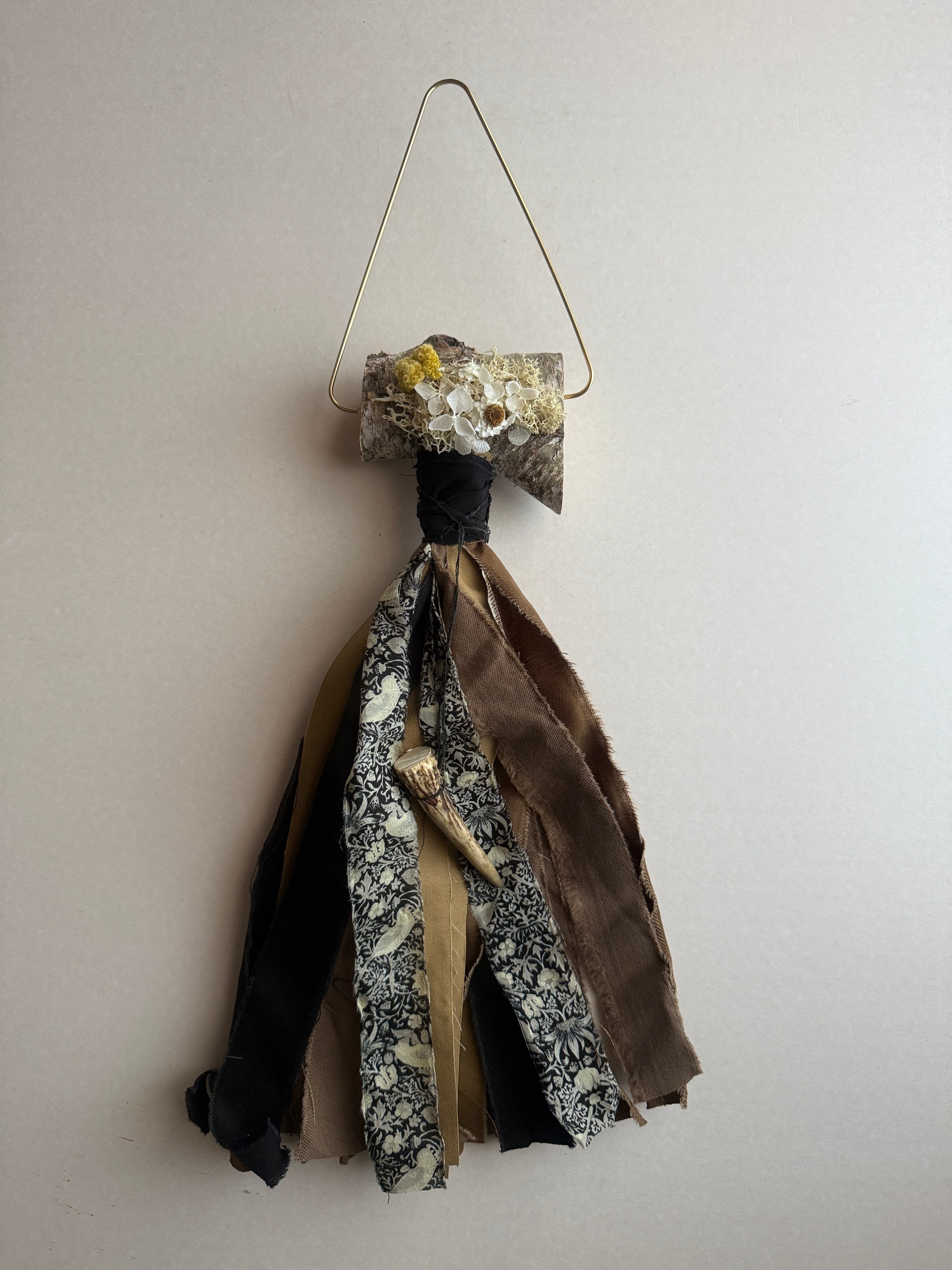 白樺と小さな鹿の角が特徴の壁飾り