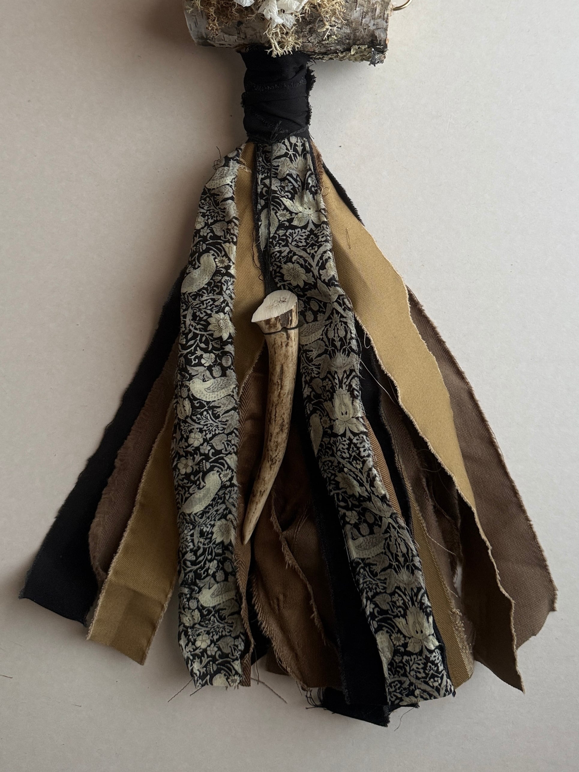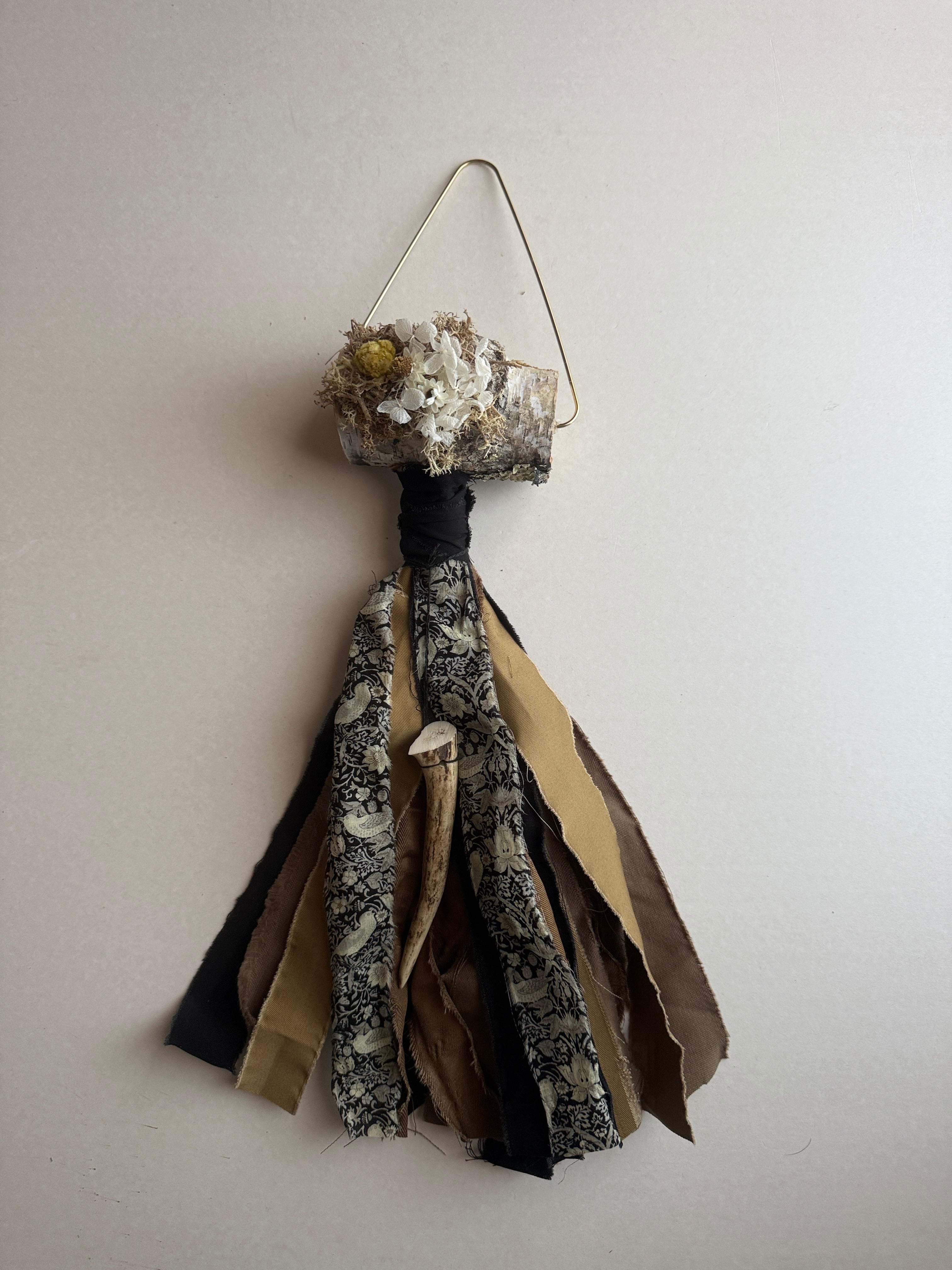 白樺と小さな鹿の角が特徴の壁飾り