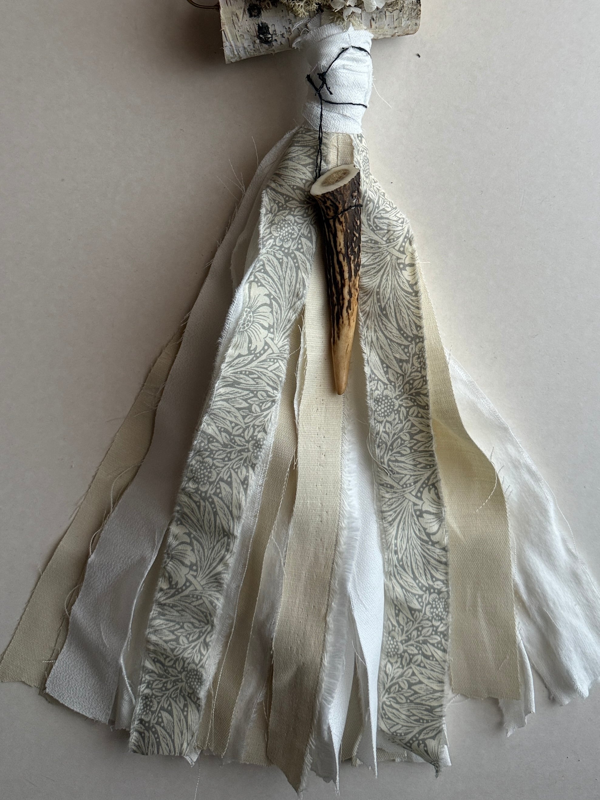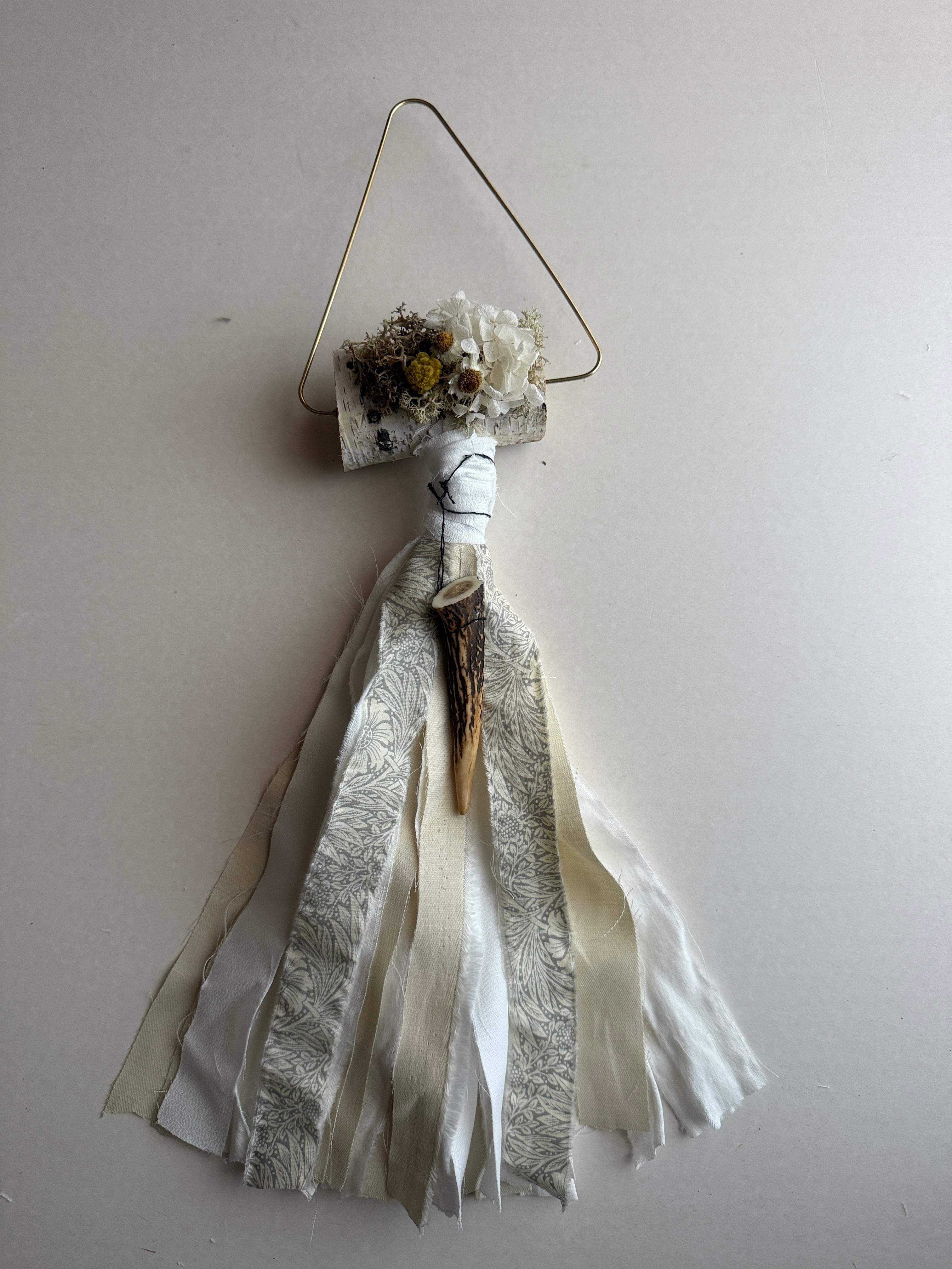 白樺と小さな鹿の角が特徴の壁飾り