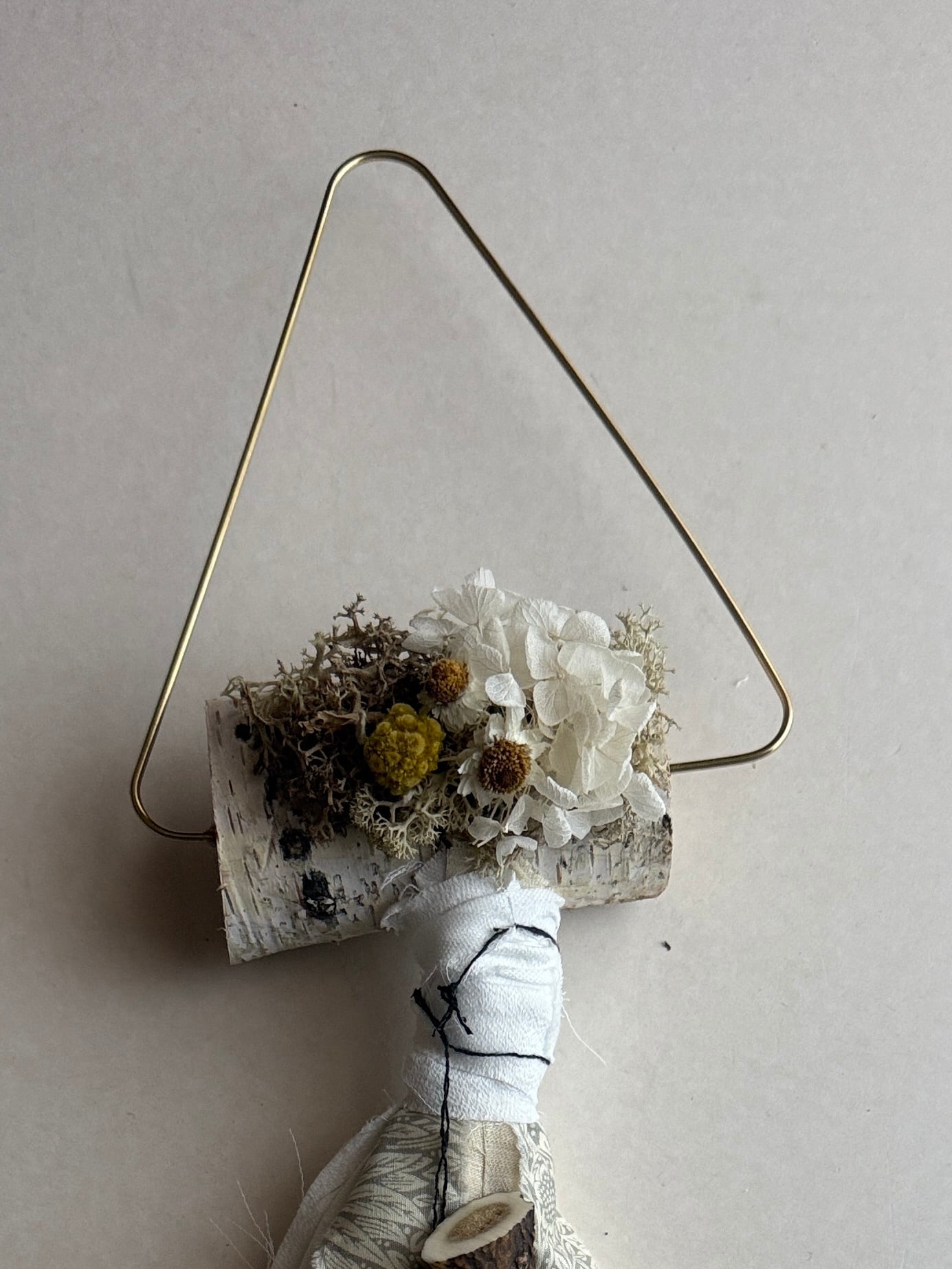 そこに肌触りの良いリネンの端布を加えることで優しい雰囲気を漂わせます。