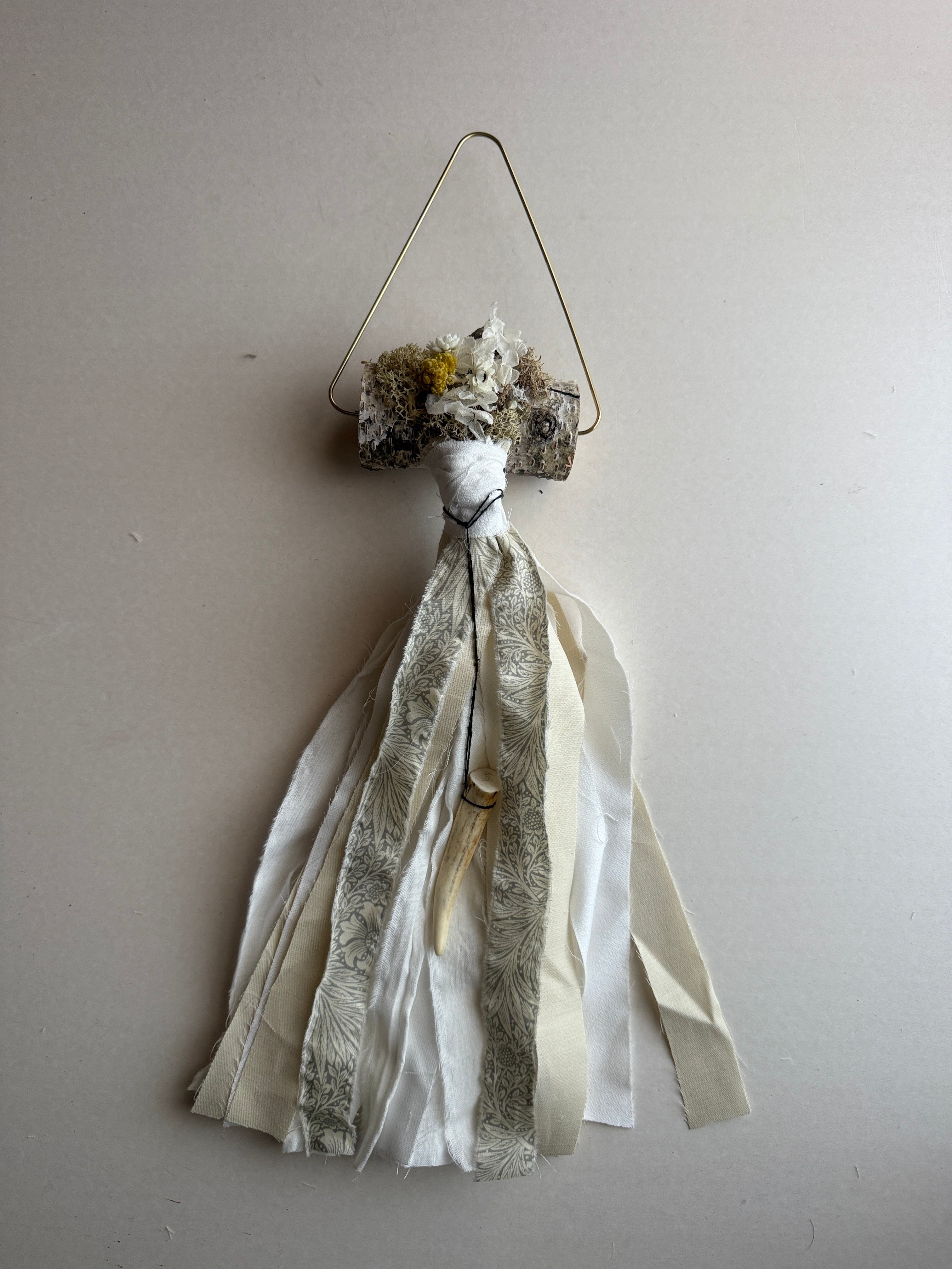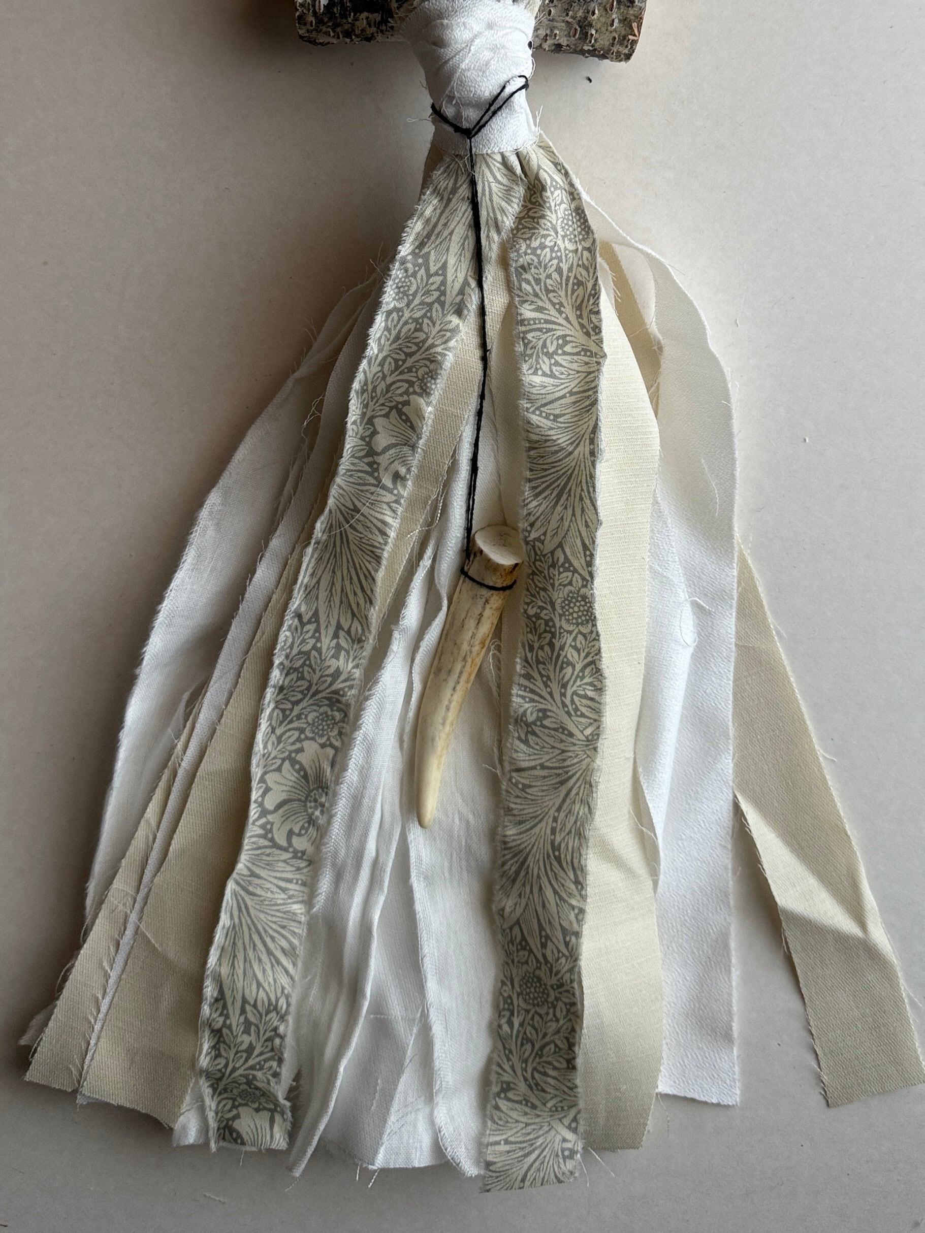 白樺と小さな鹿の角が特徴の壁飾り