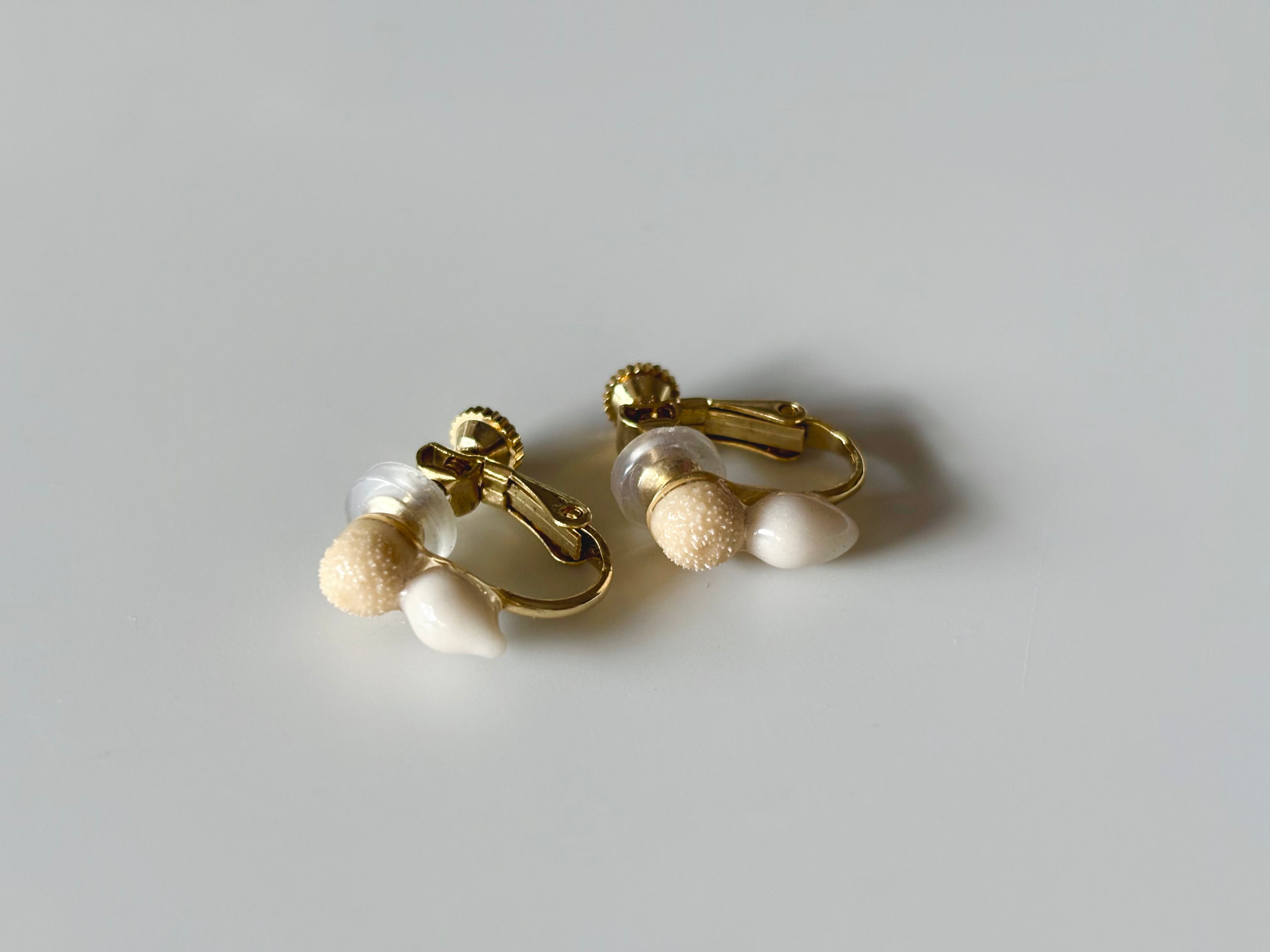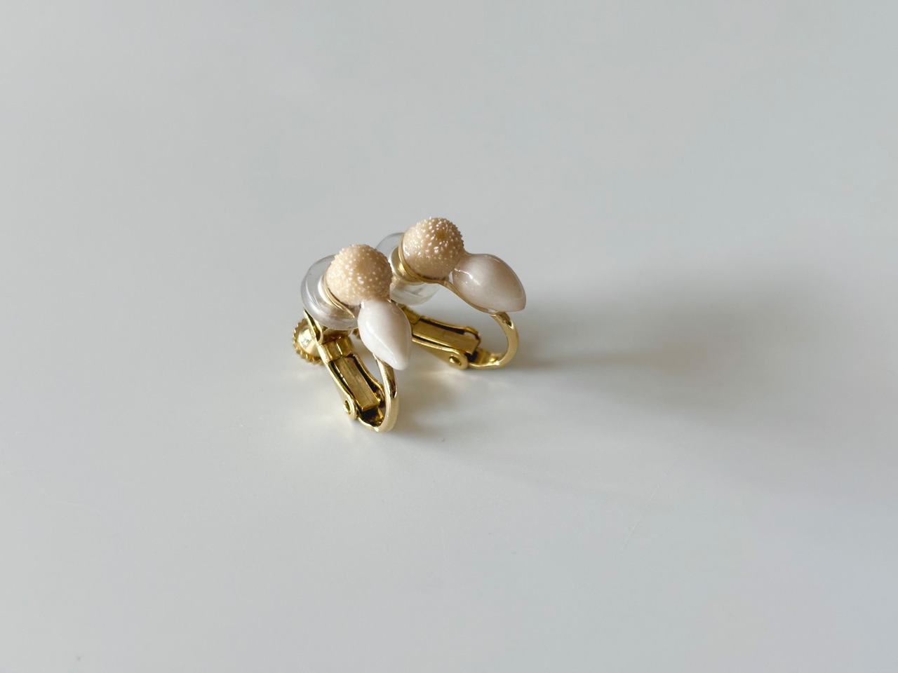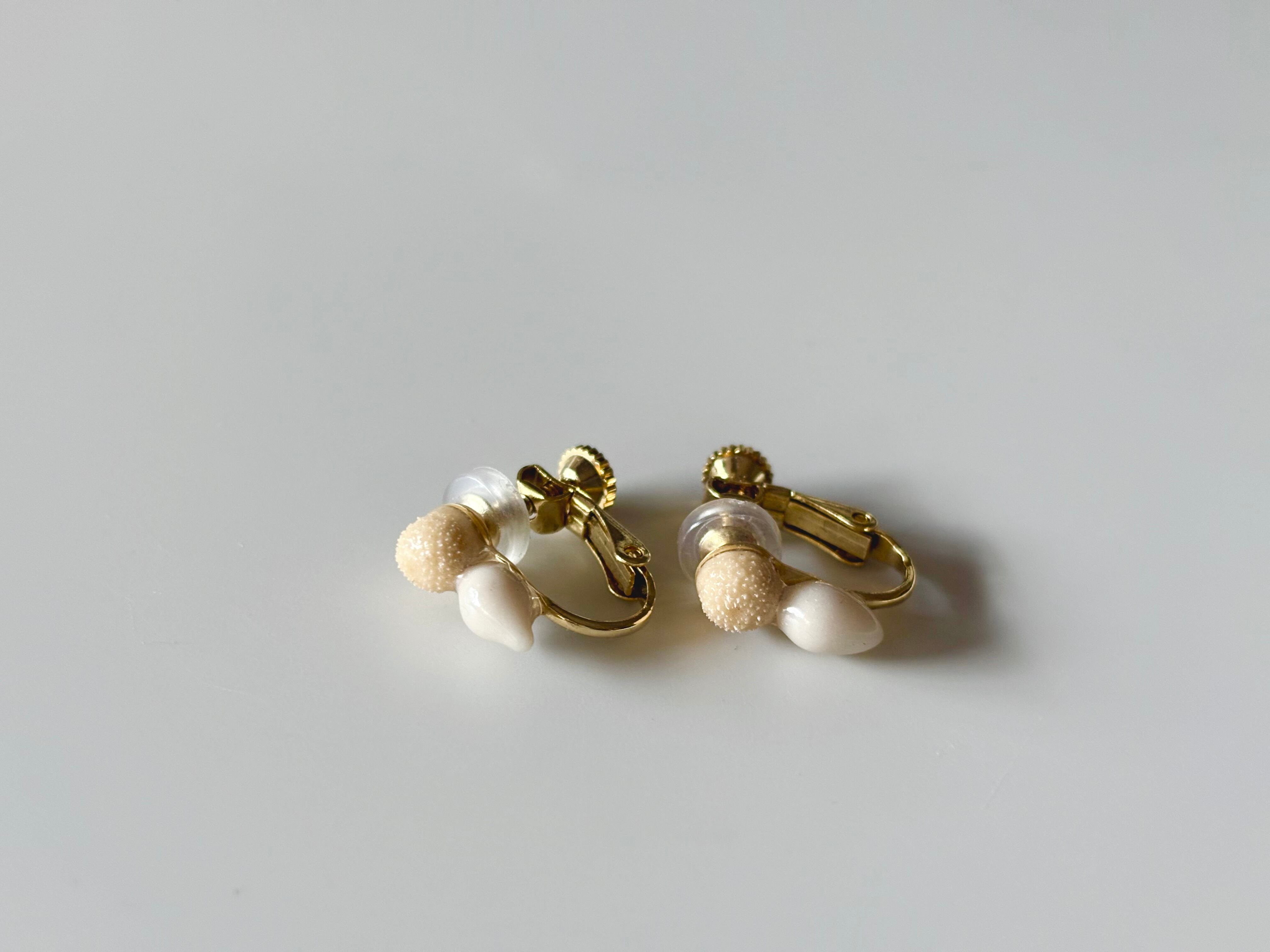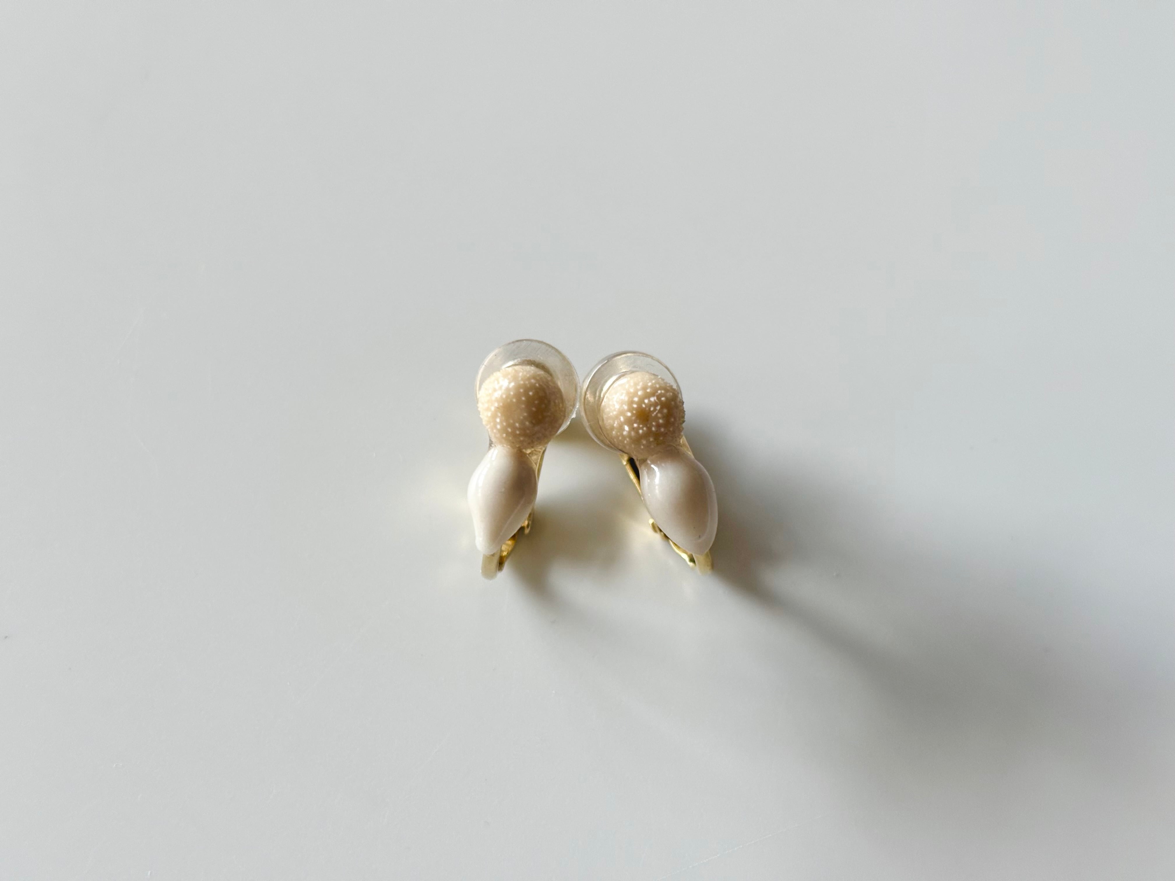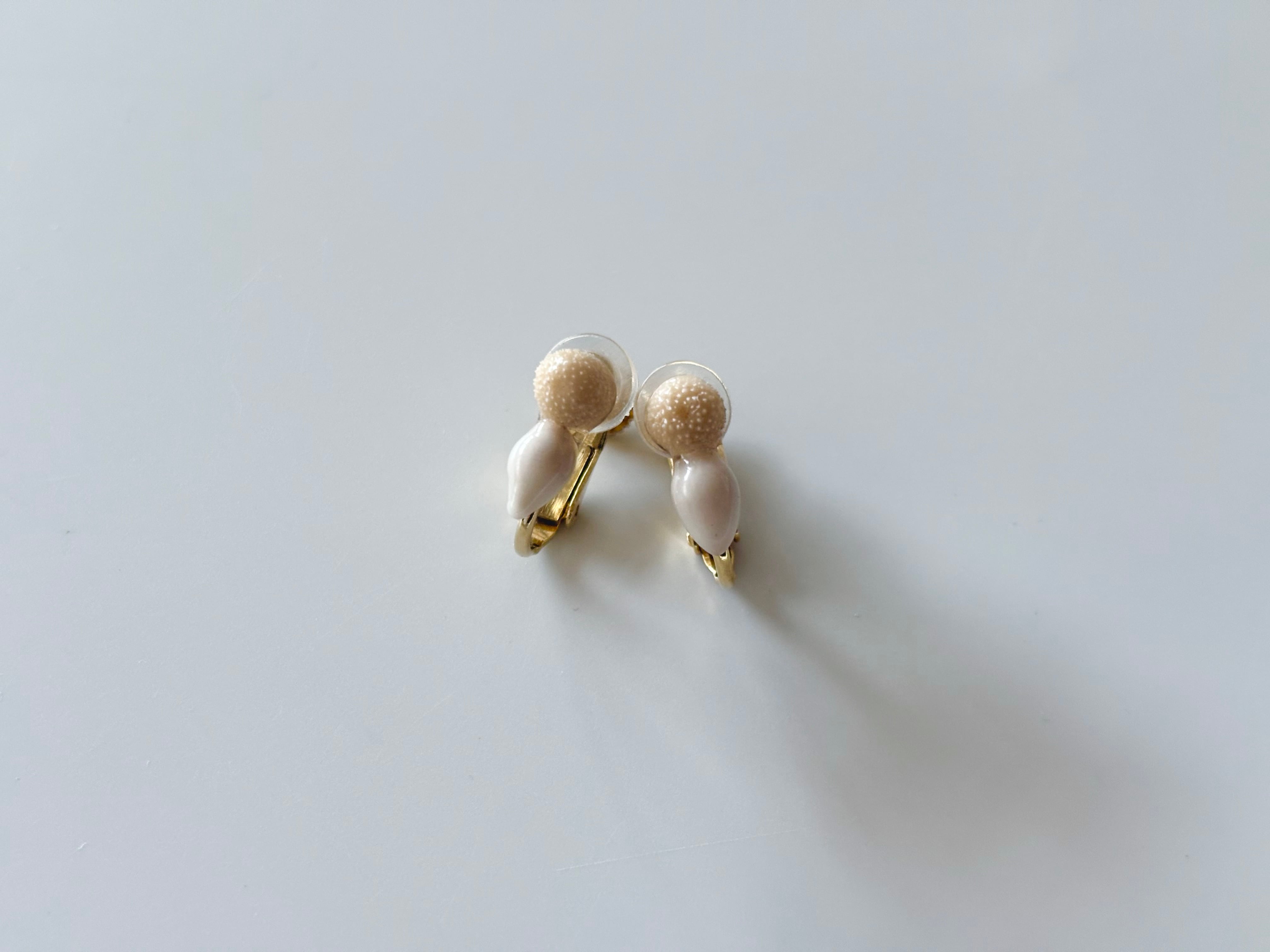 本物の植物ピンキーボタンとユーカリの実の上から、土や鉱石などから得られた天然の顔料を使って色付けをしたイヤリングです。