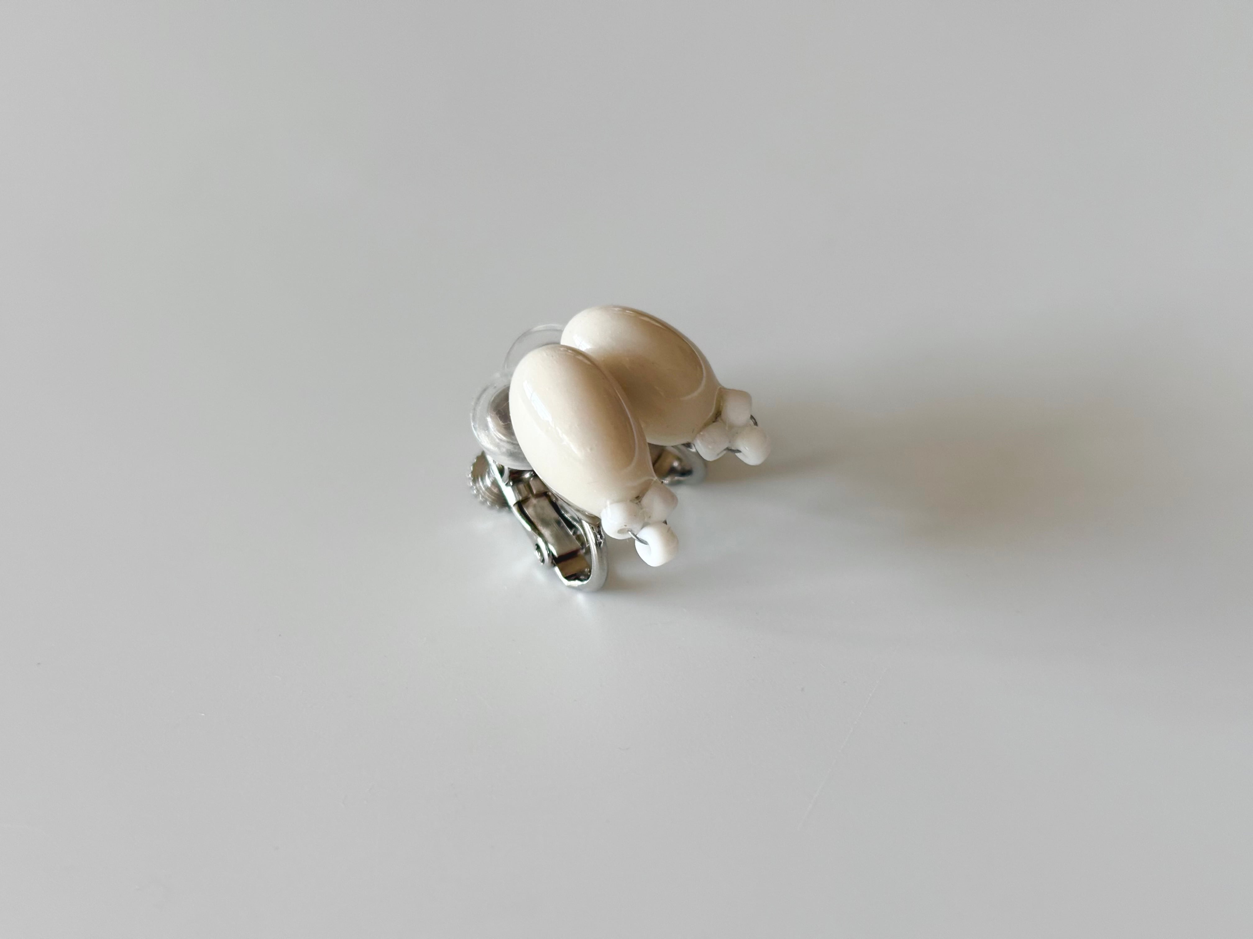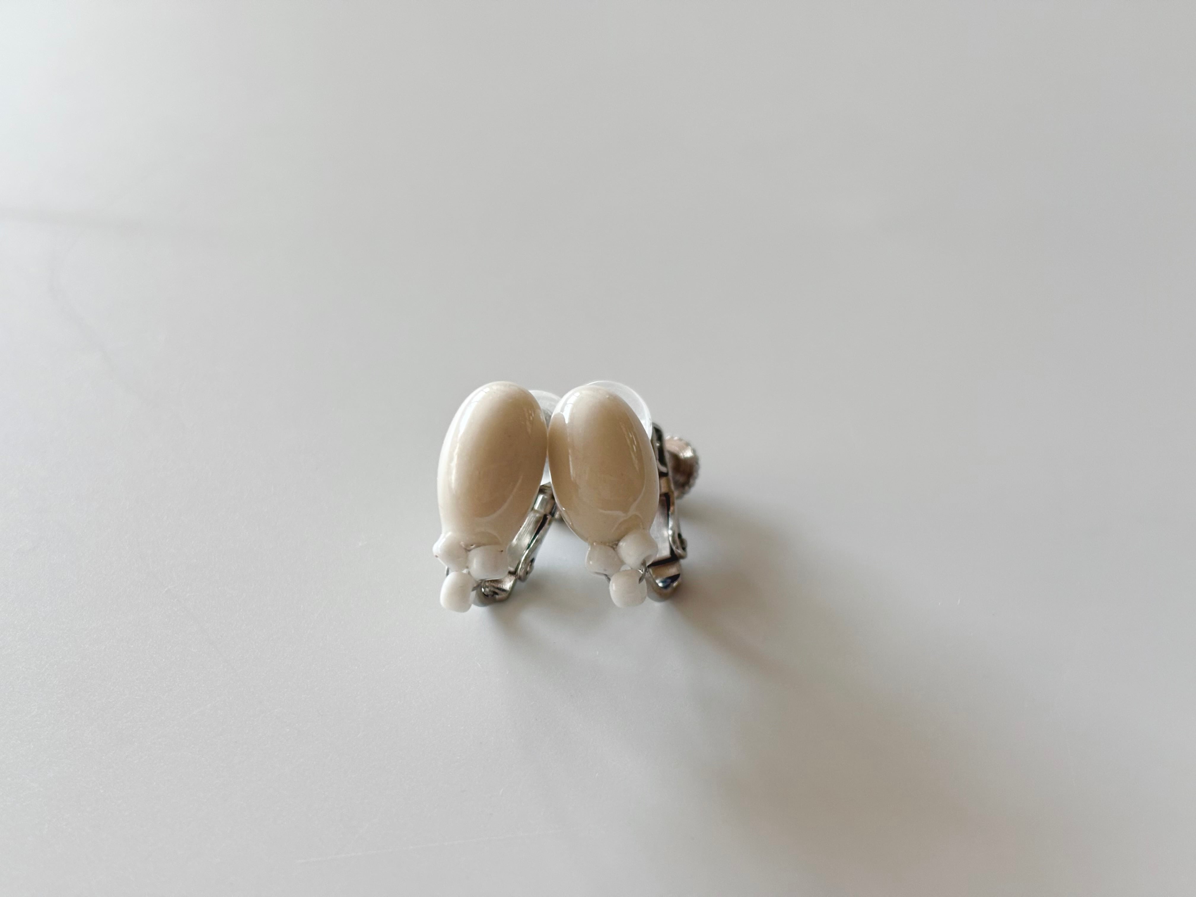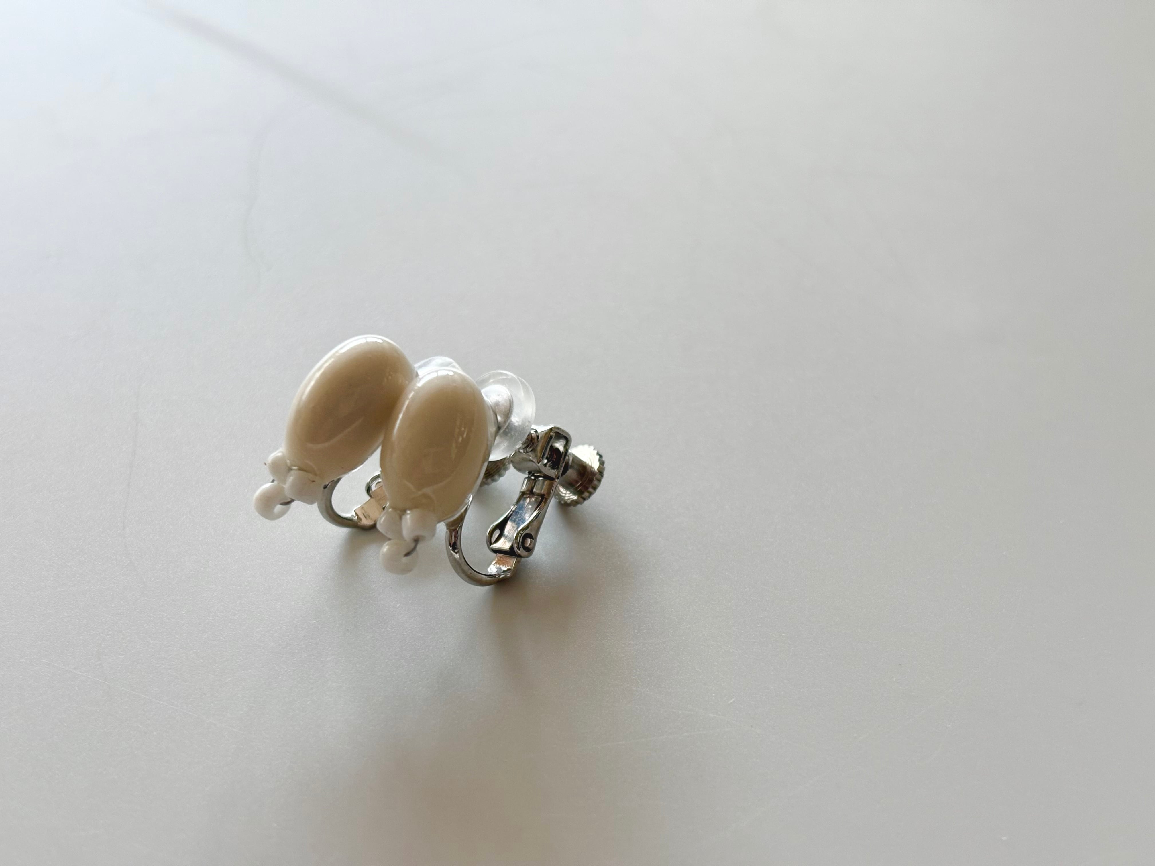 土や鉱石などから得られた天然の顔料を使って色付けをした白花豆の実に、ヴィンテージのビーズを組み合わせたイヤリングです。