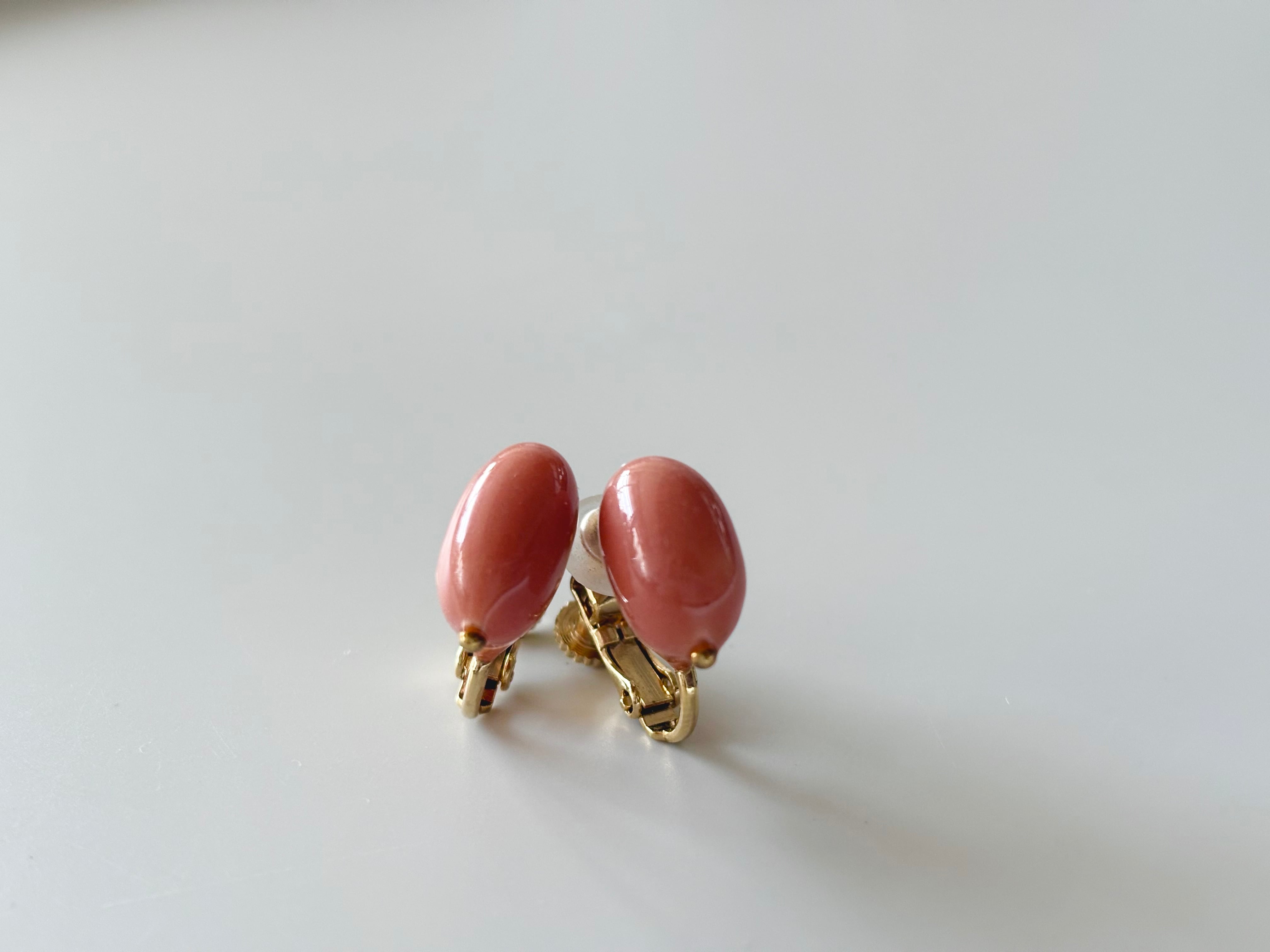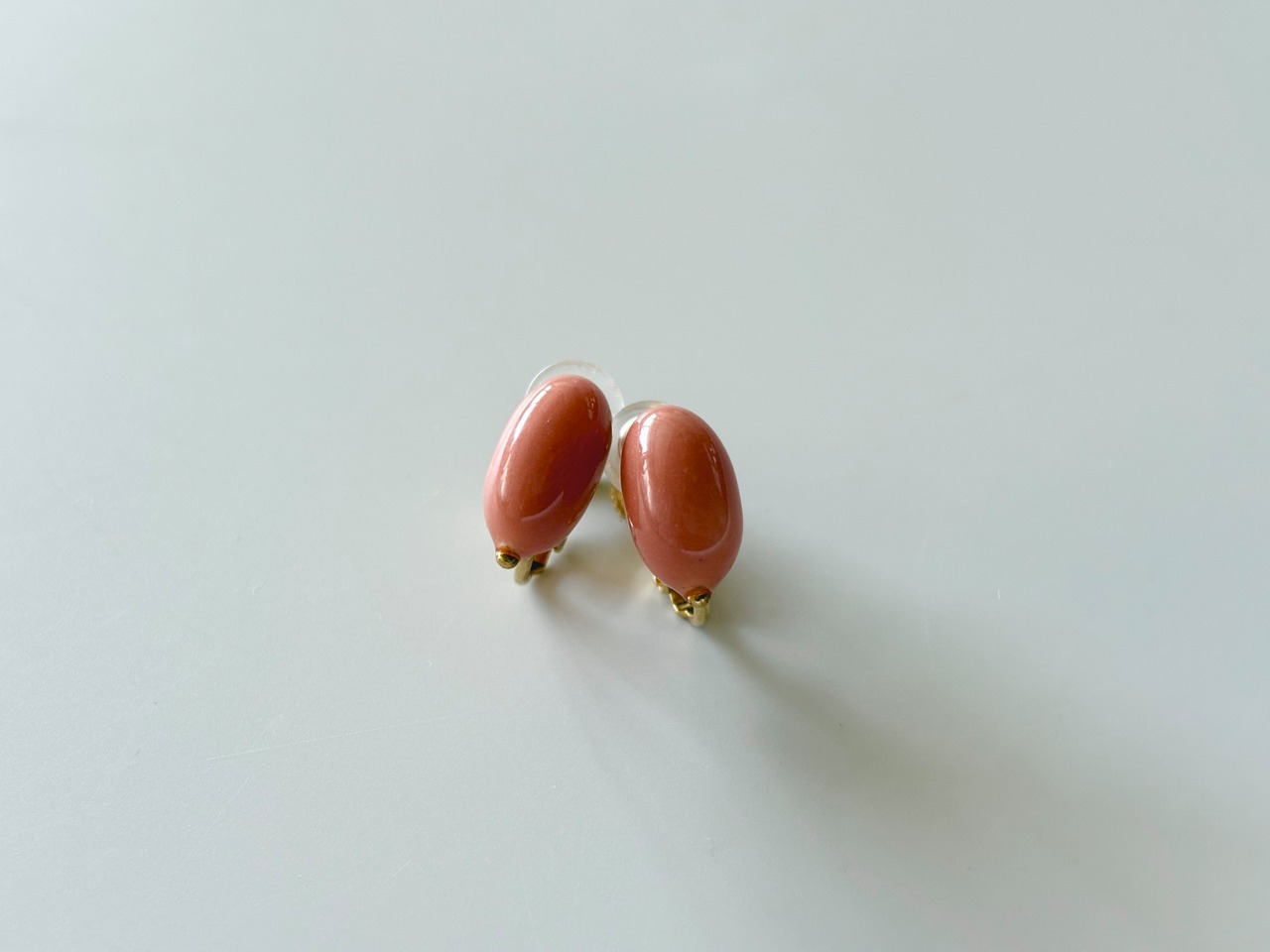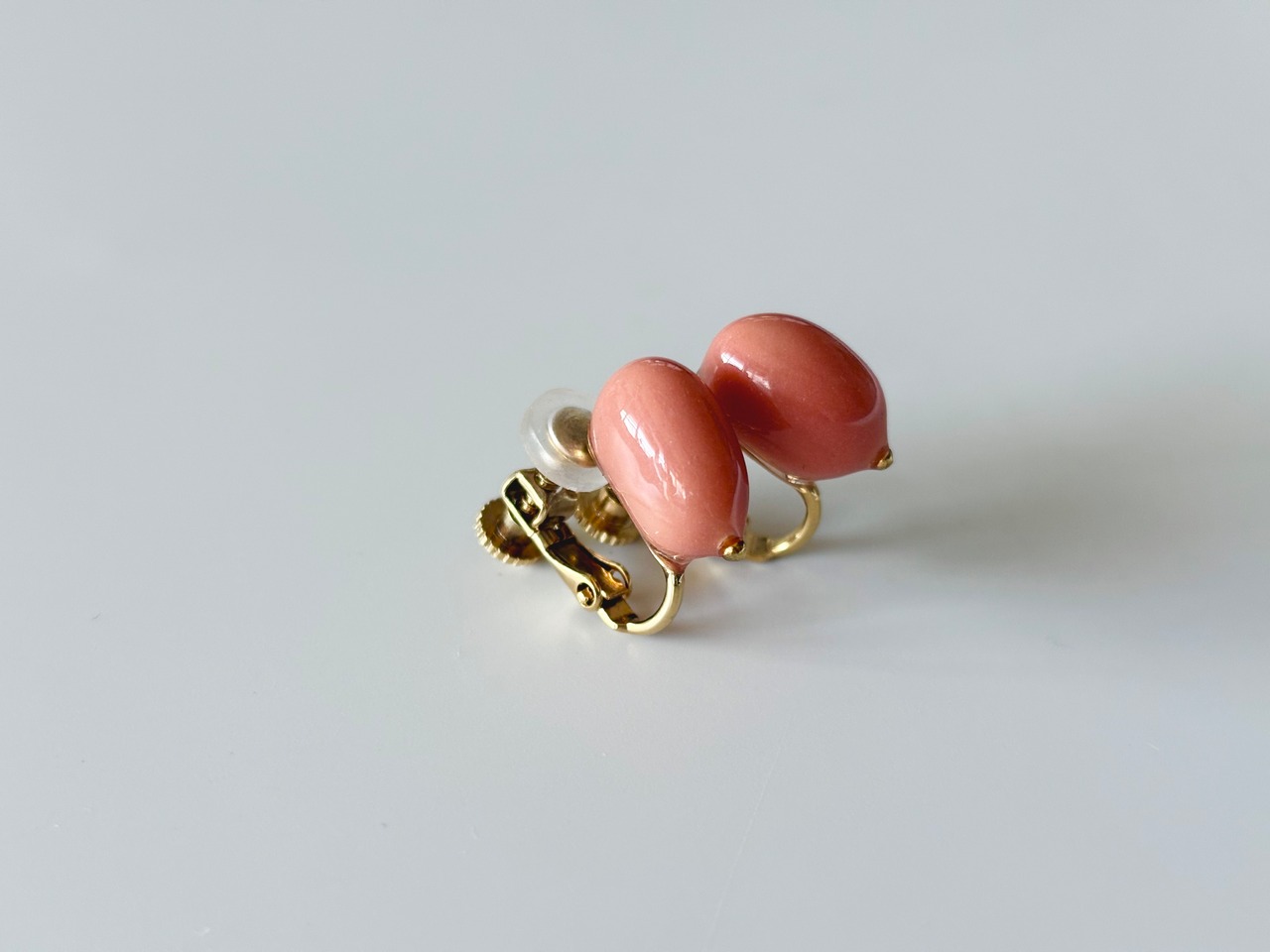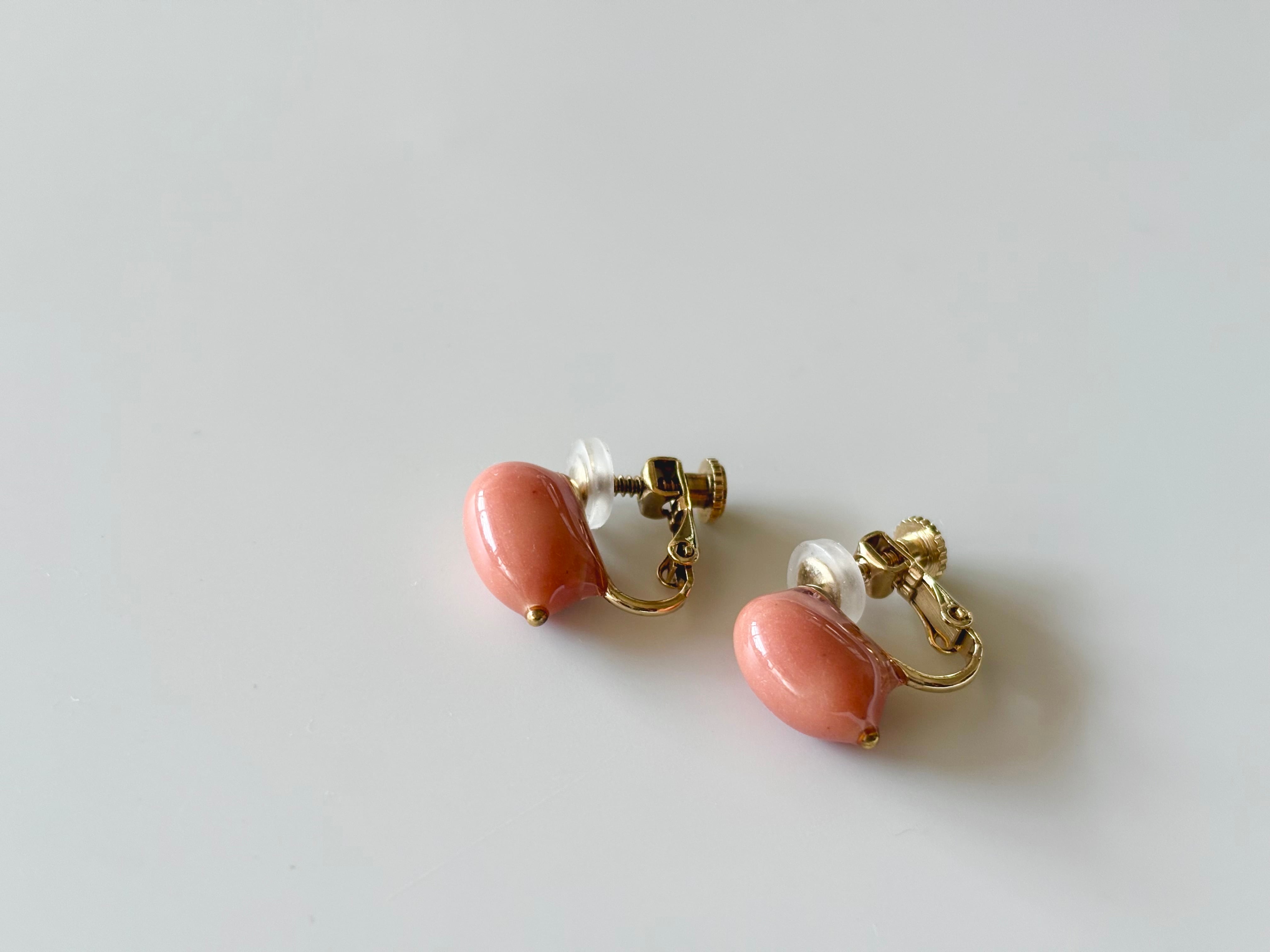 鉱石や土などから得られた天然の顔料で色付けをした白花豆に、ゴールドの小さな粒を合わせたイヤリングです。