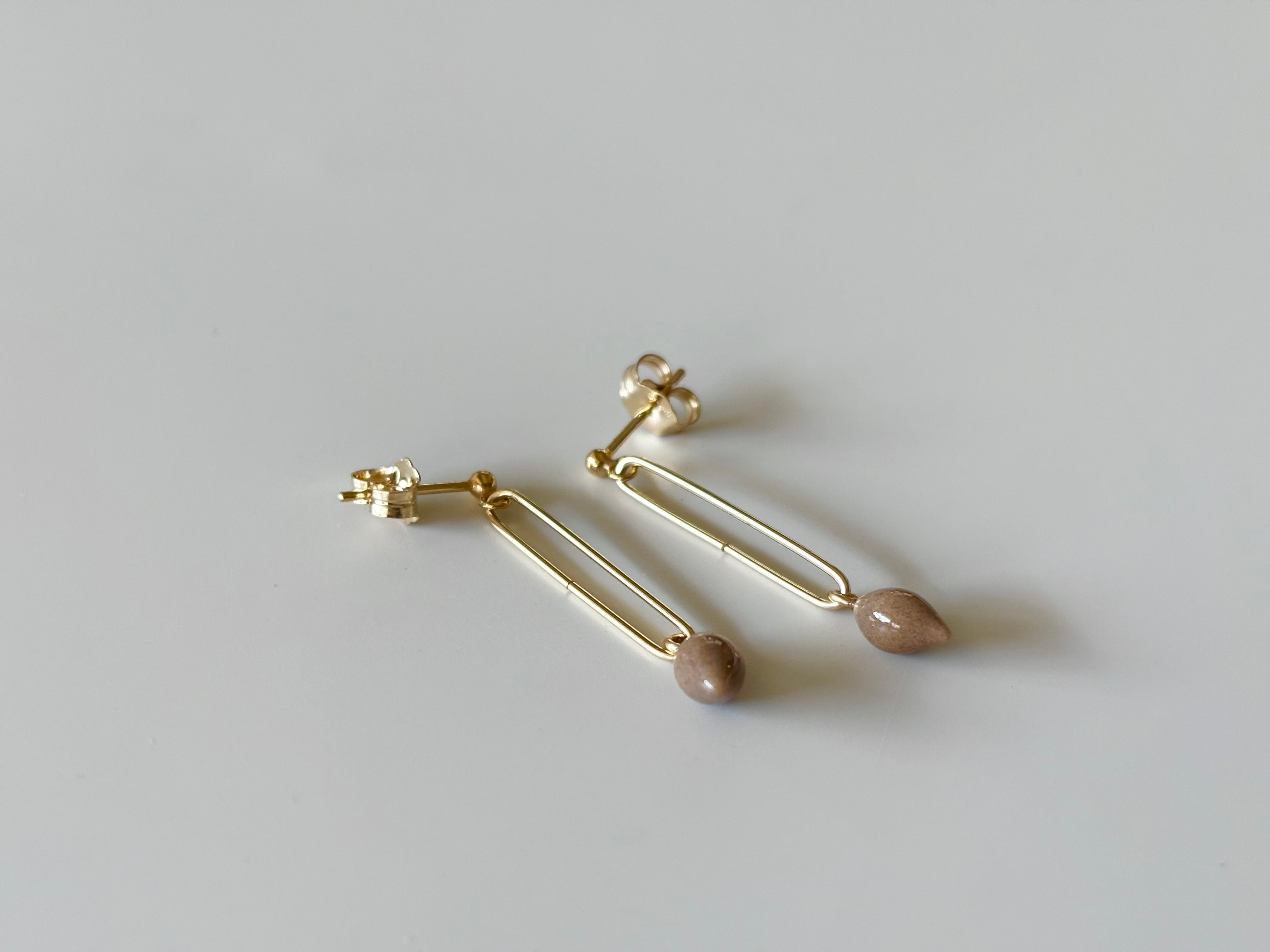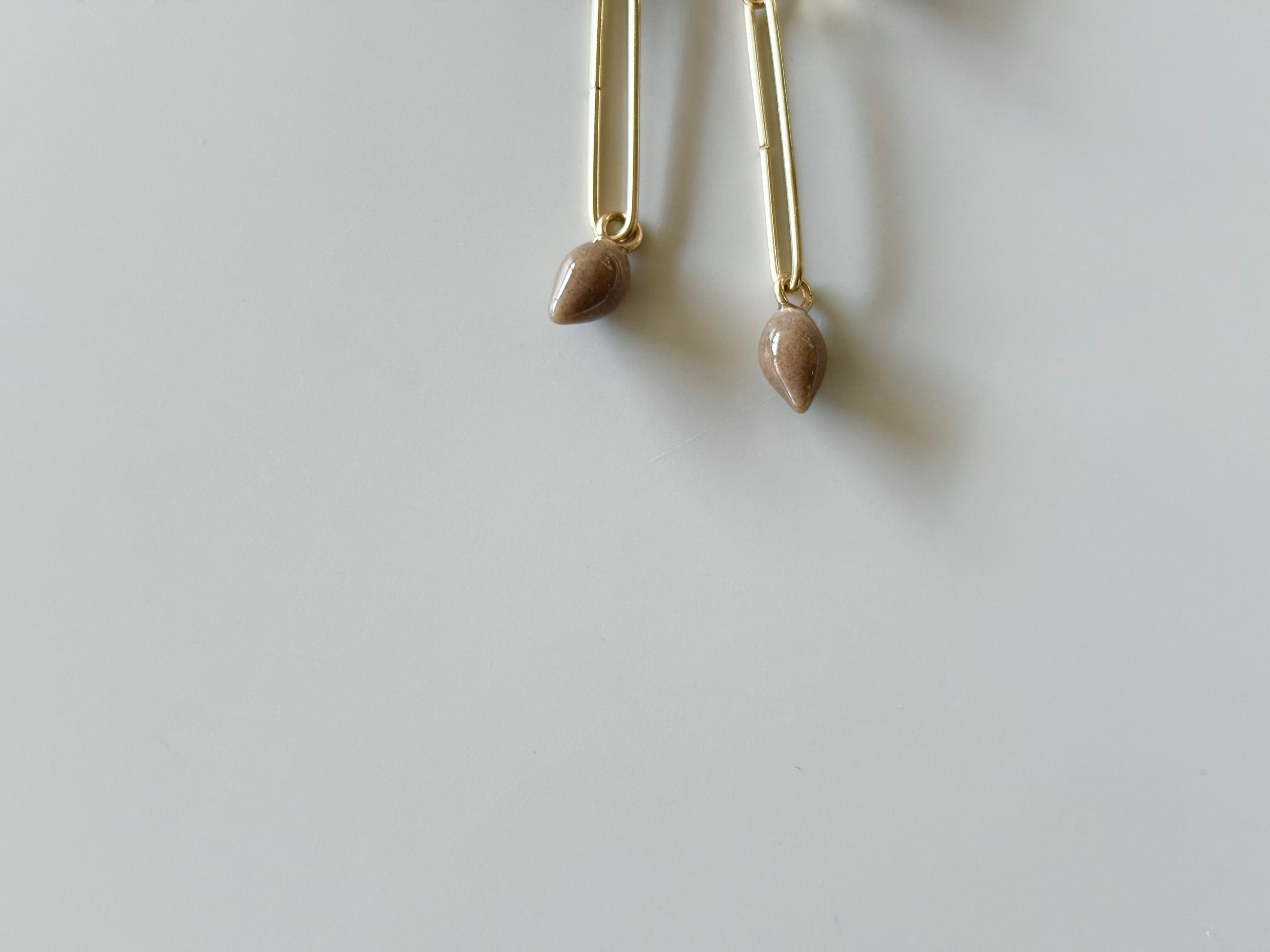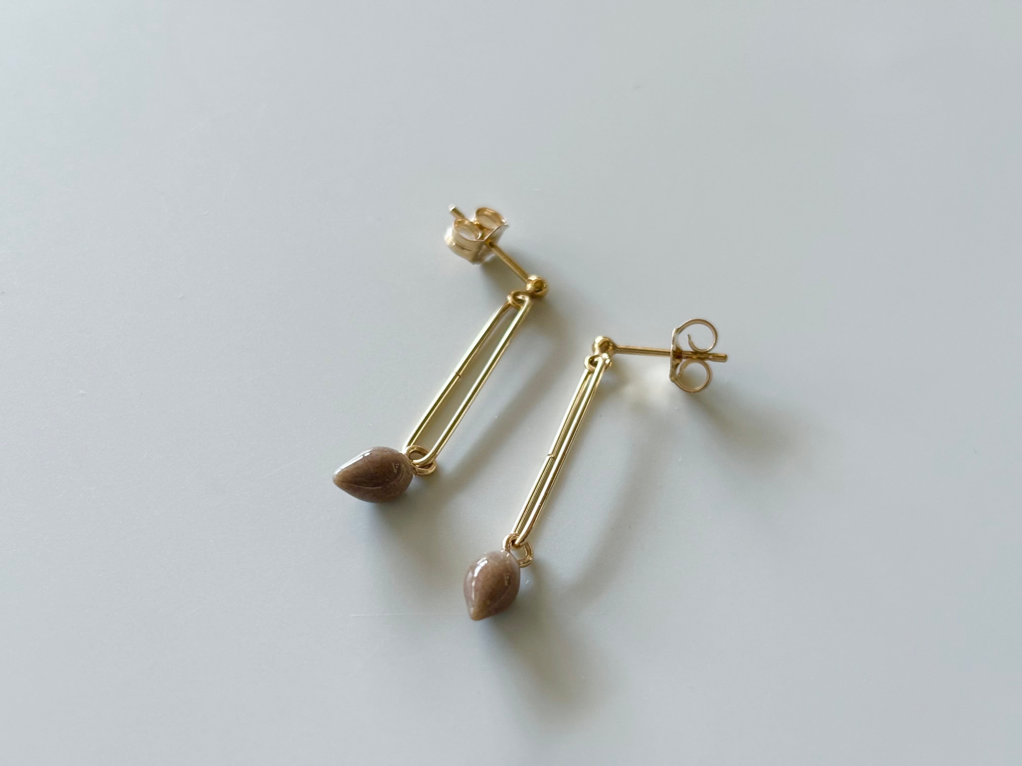 本物の植物ユーカリの実の上から、土や鉱石などから得られた天然の顔料を使って色付けしたロングピアスです。