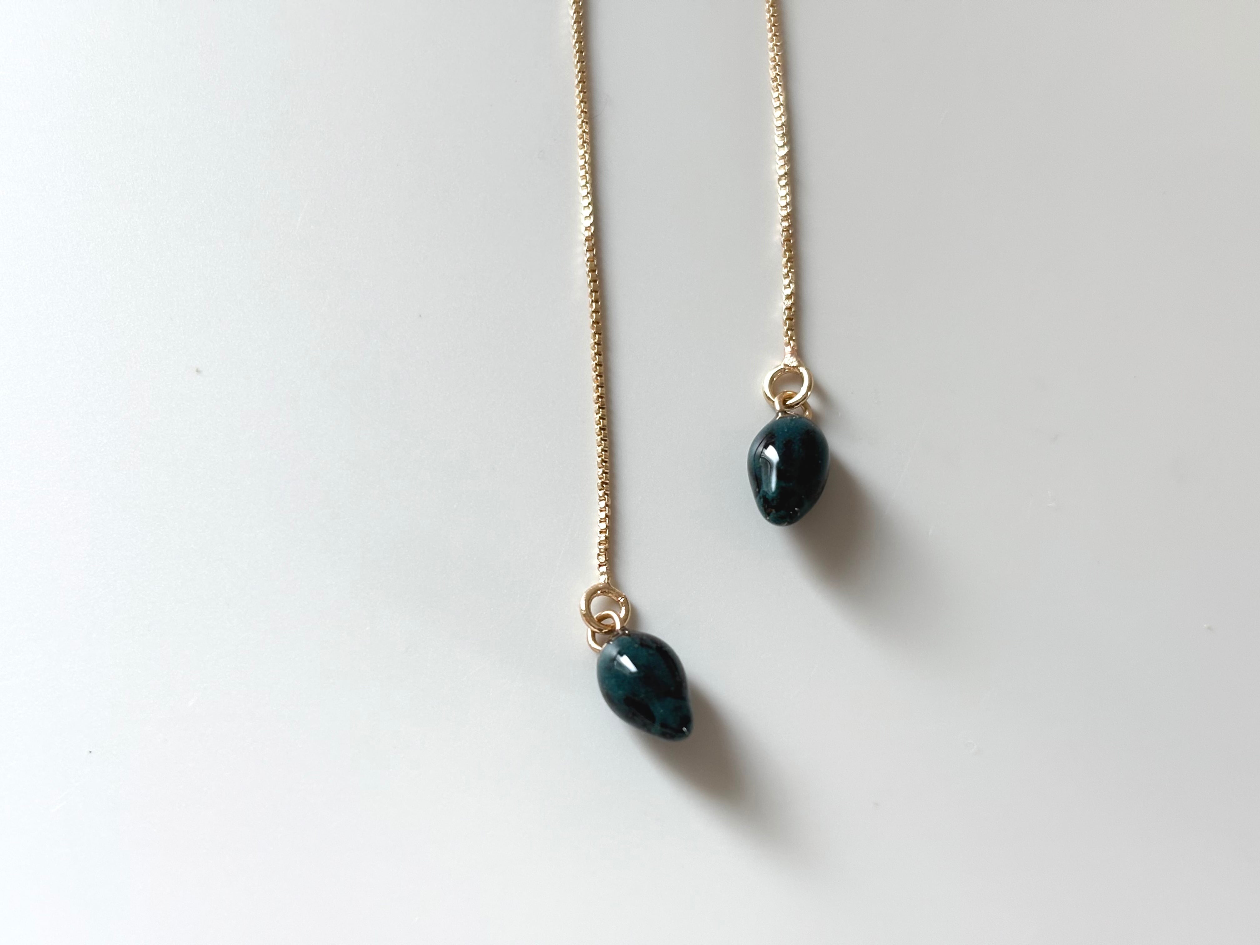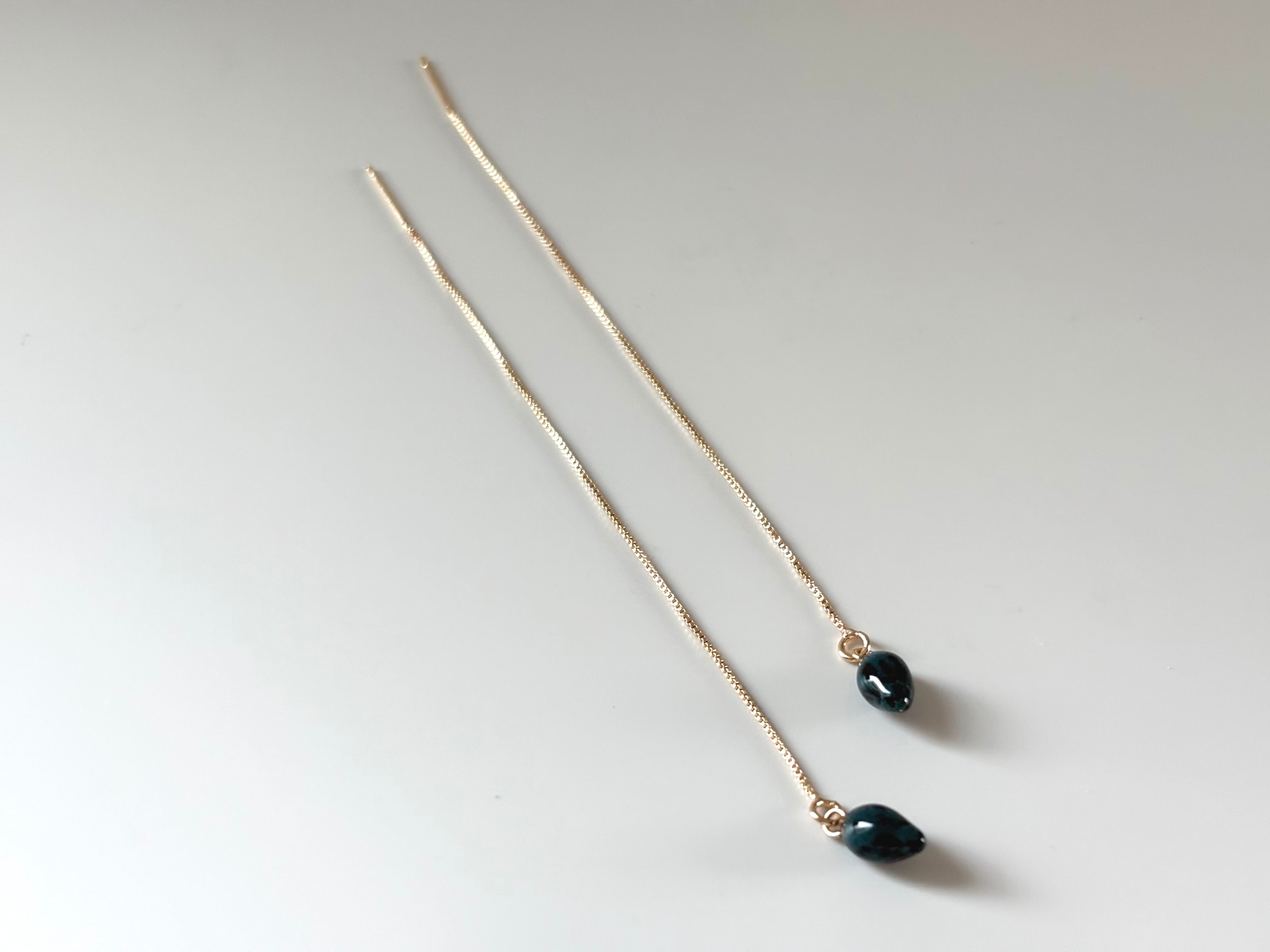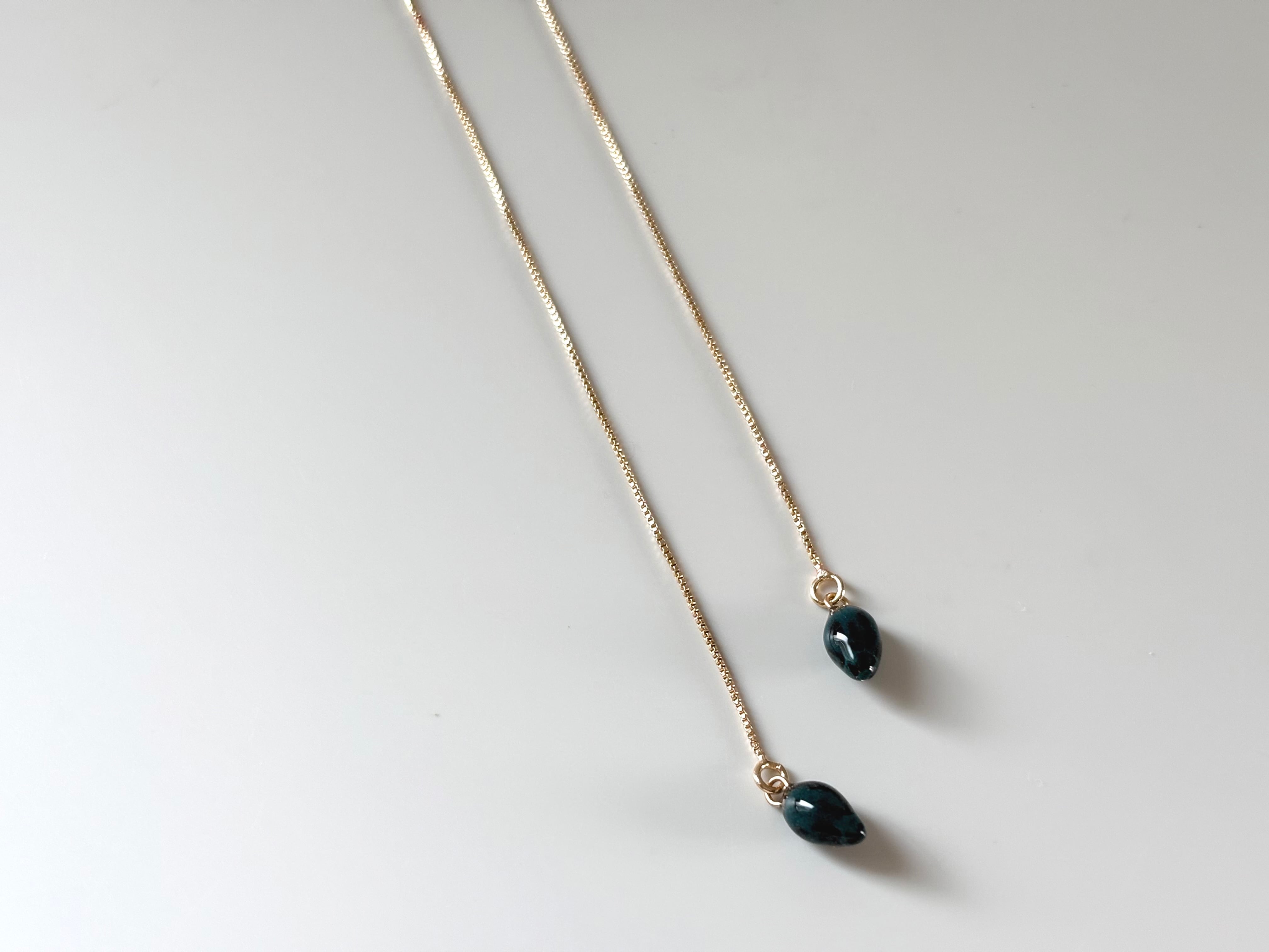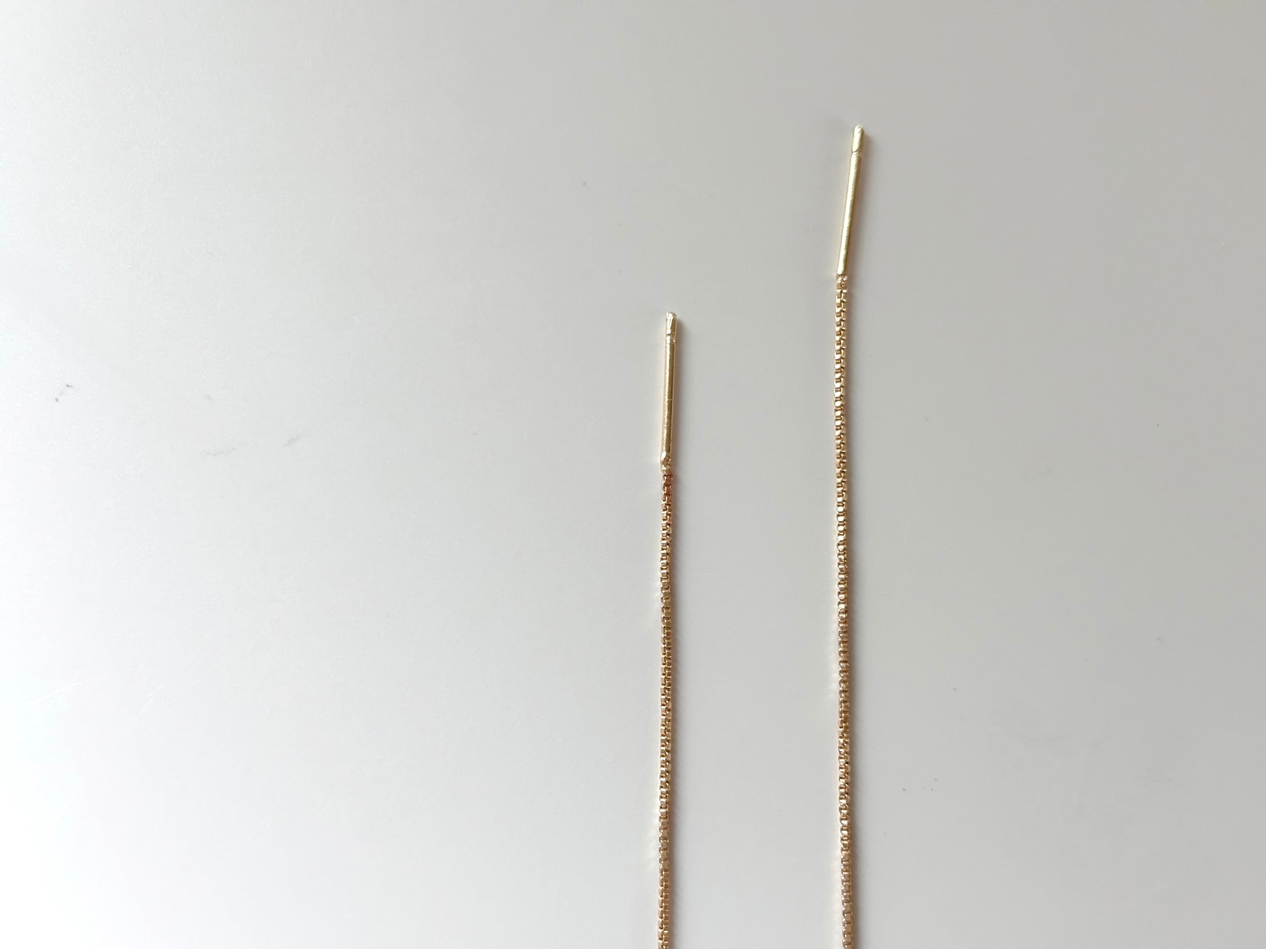 チェーン部分をスライドする事でお好きな長さで着けていただく事が出来るピアスです。