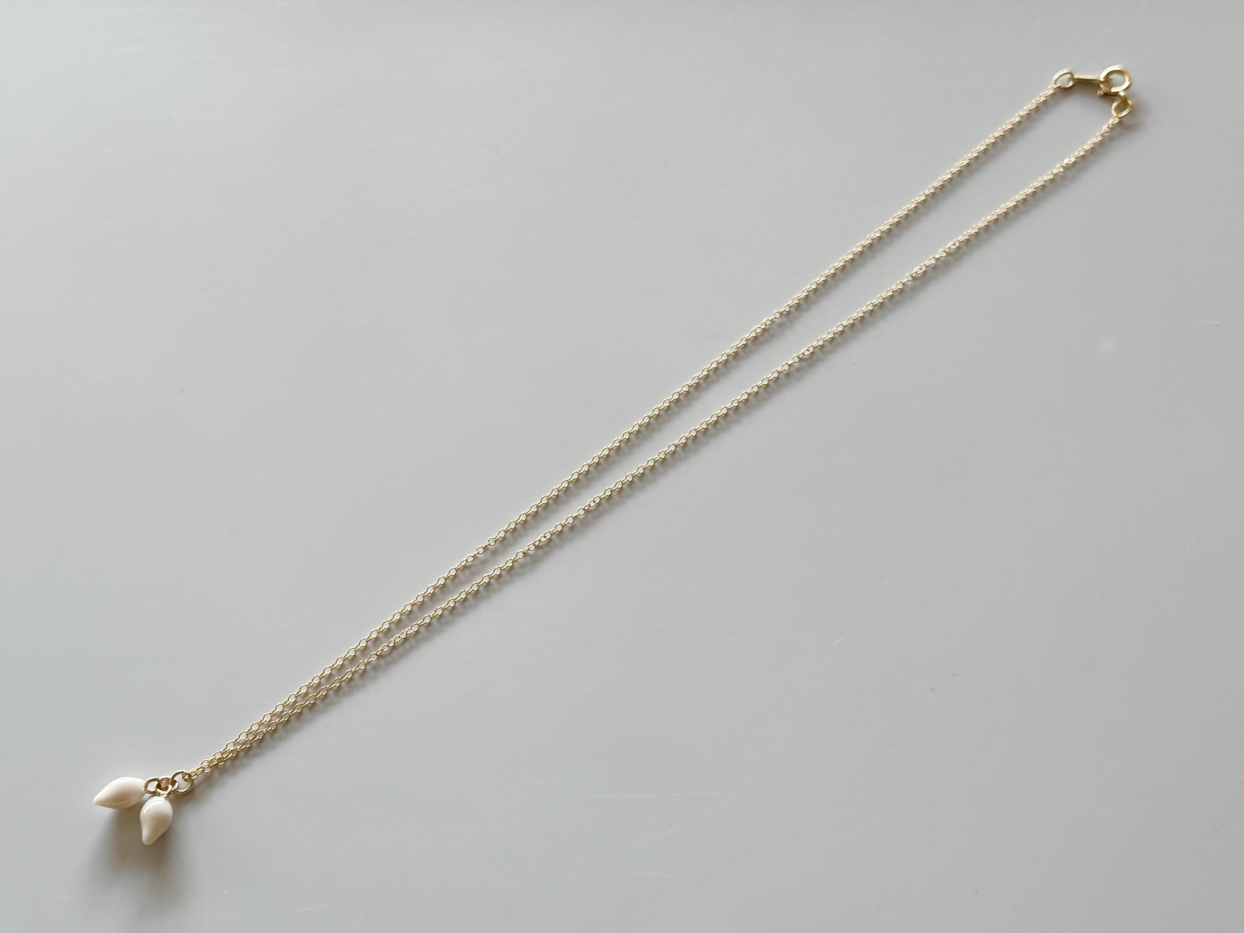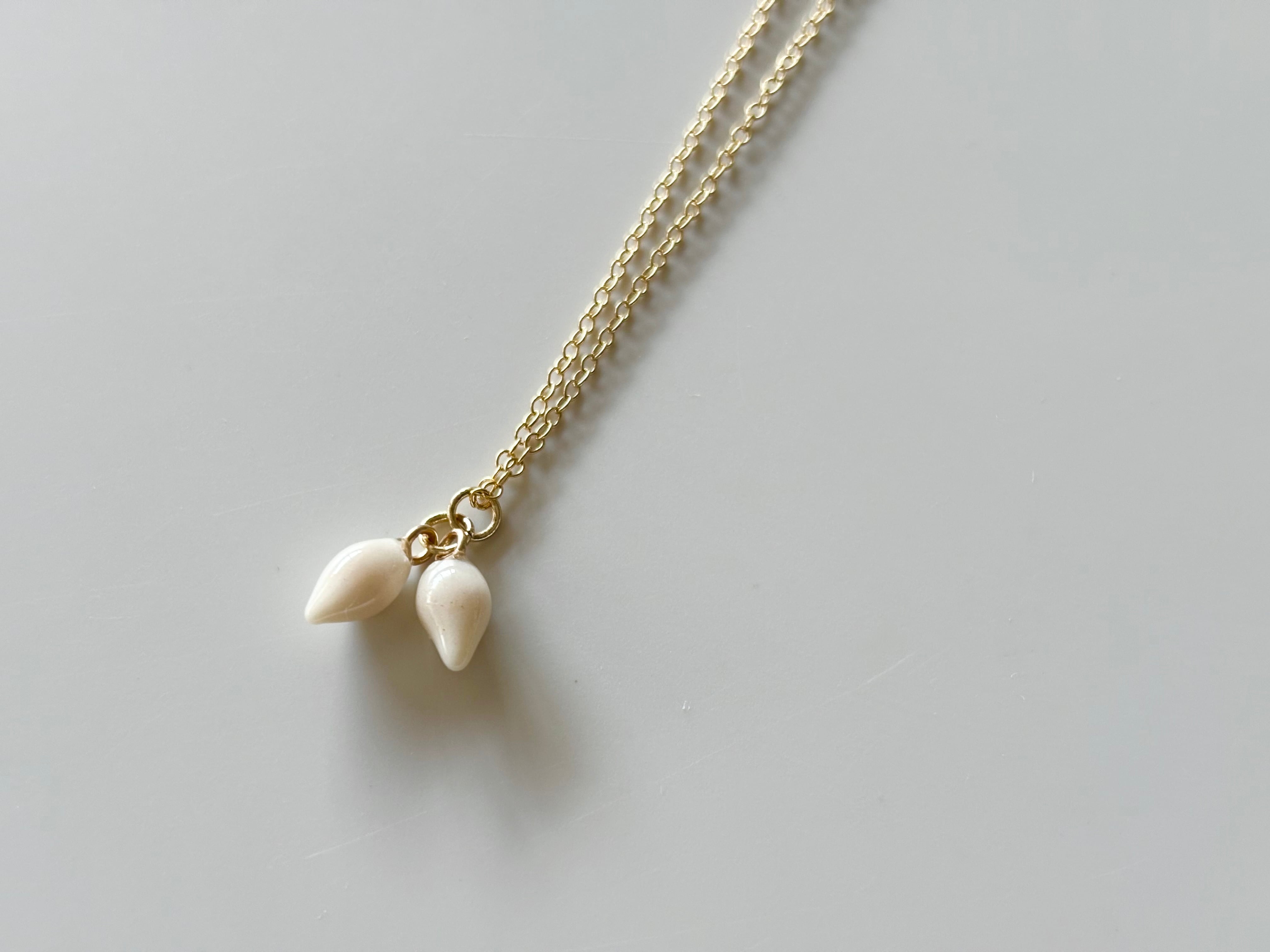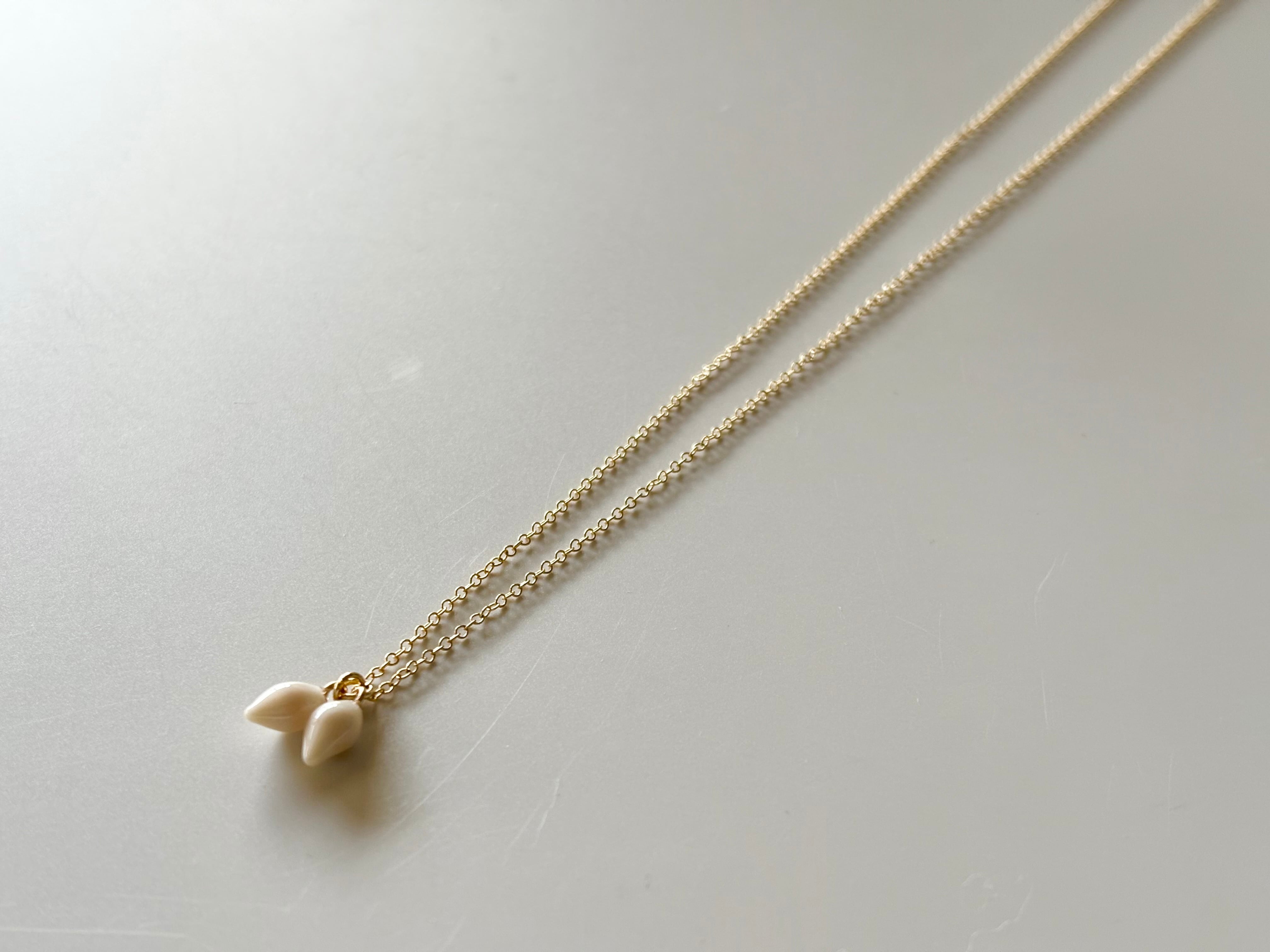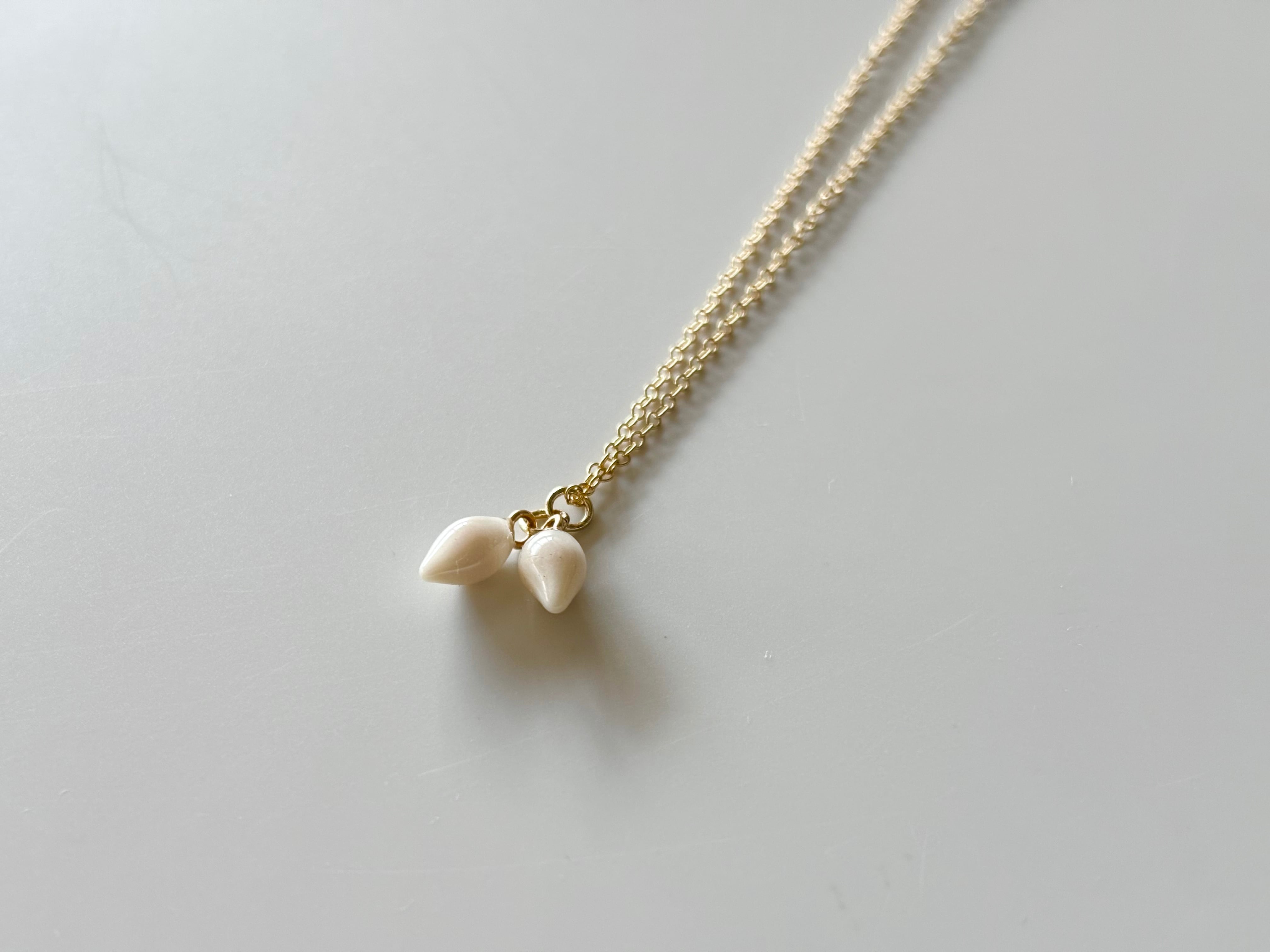 鉱石や土などから得られた天然の顔料で色付けをしたユーカリの実を2粒使用したネックレスです。