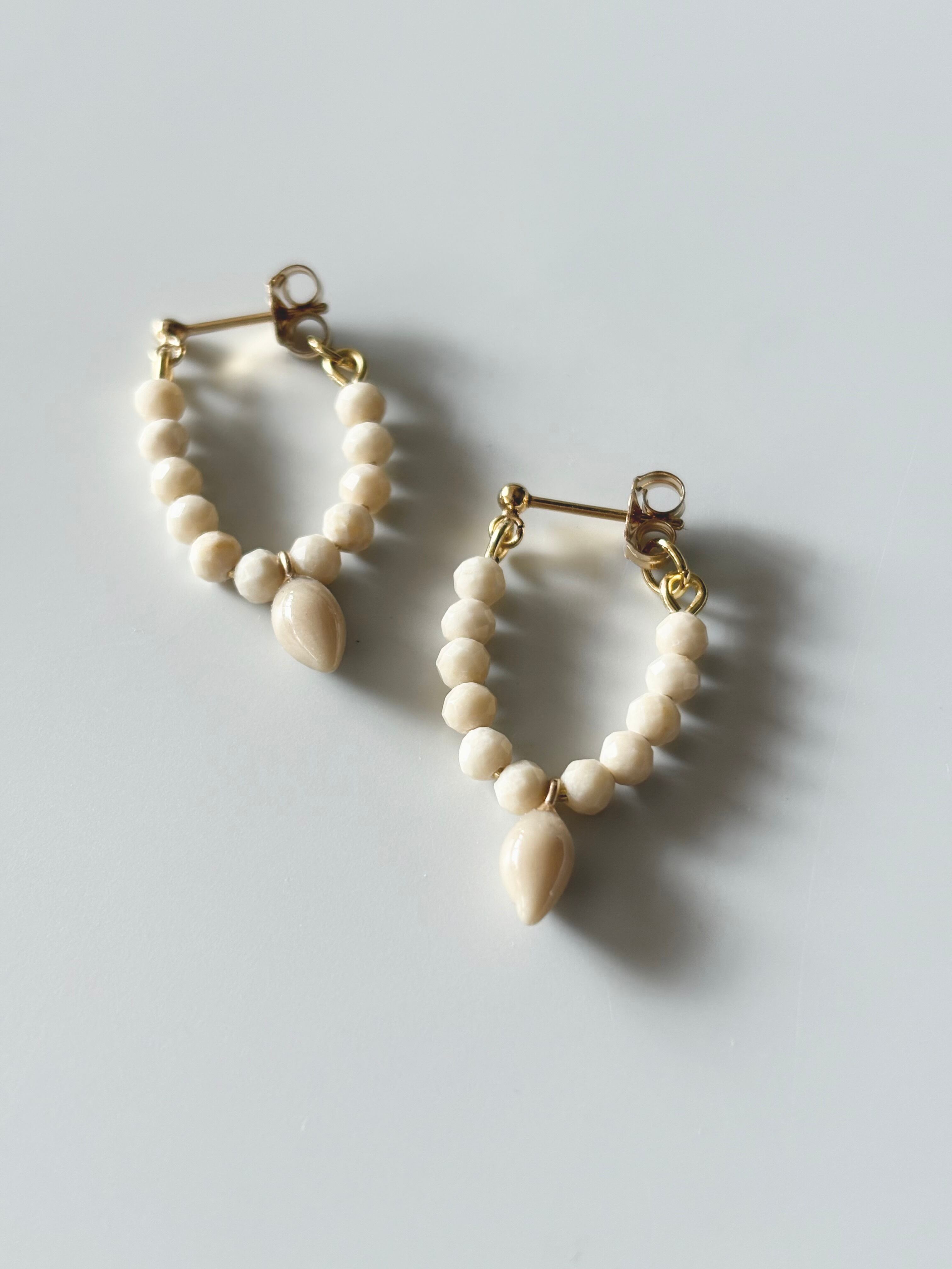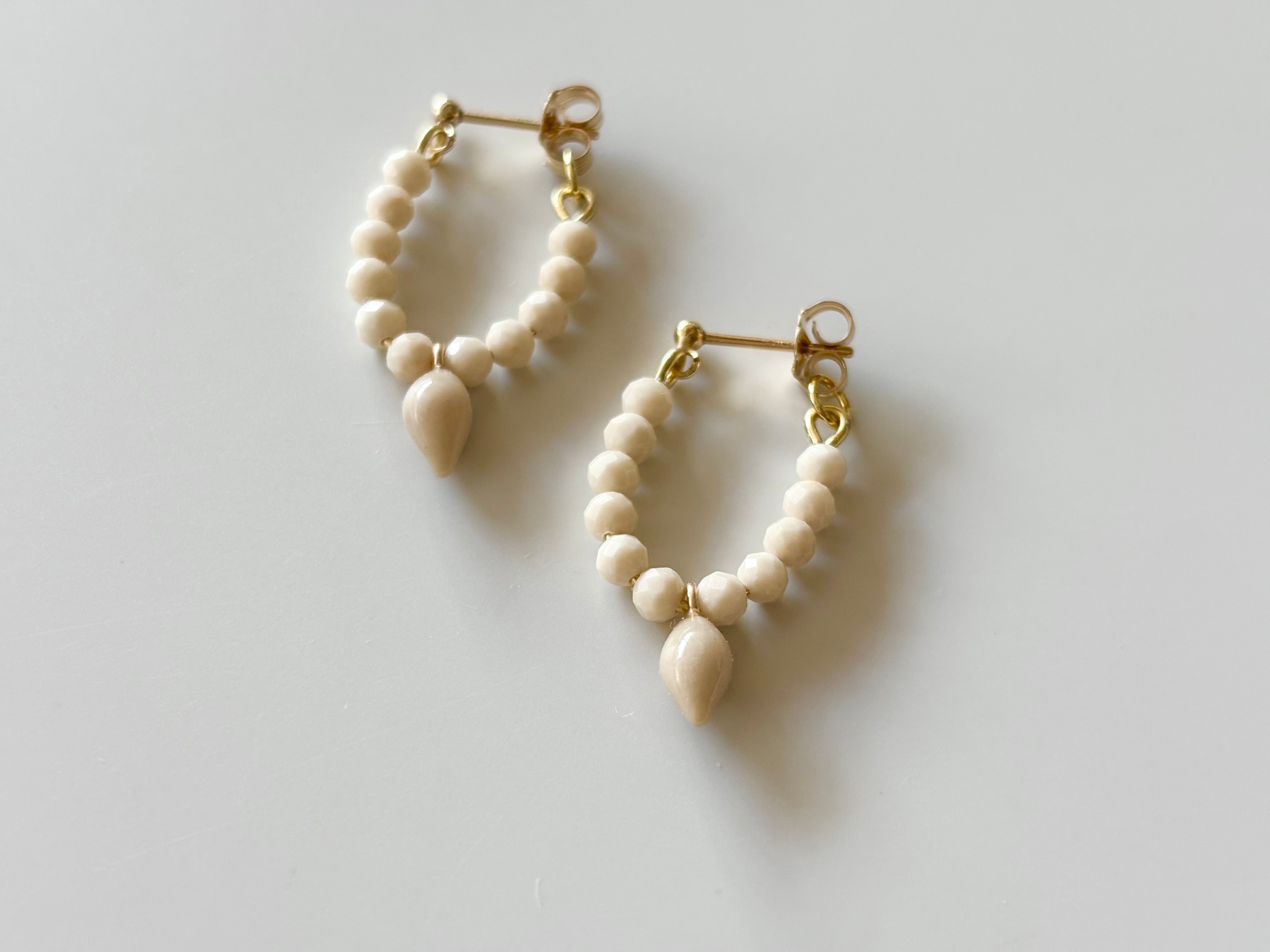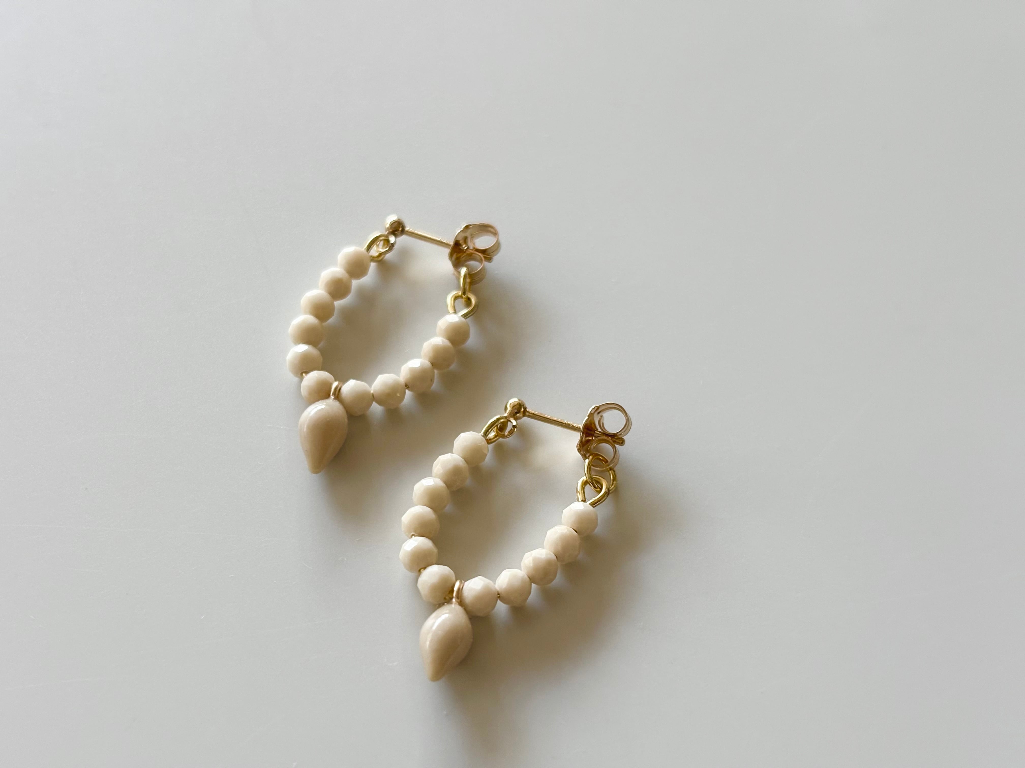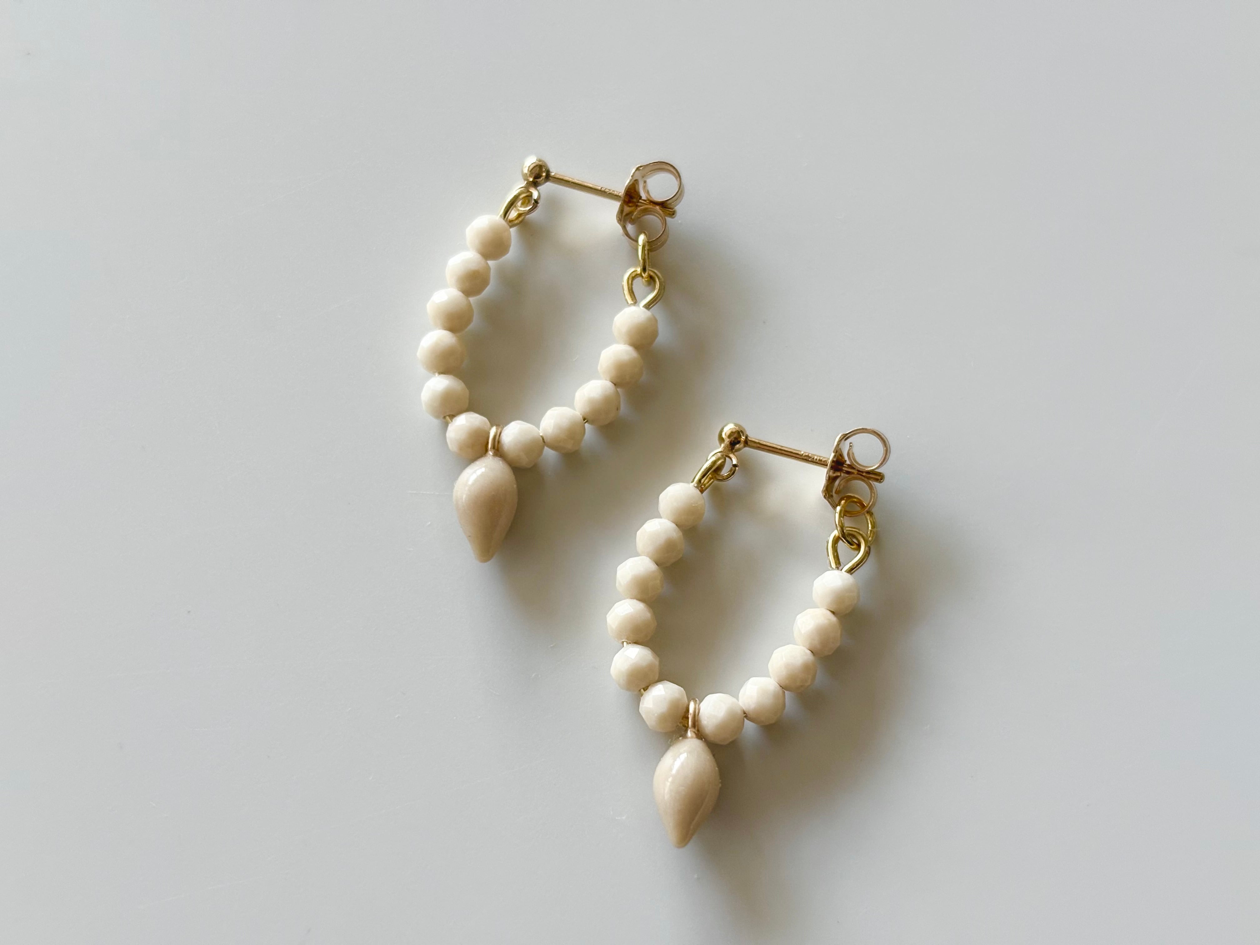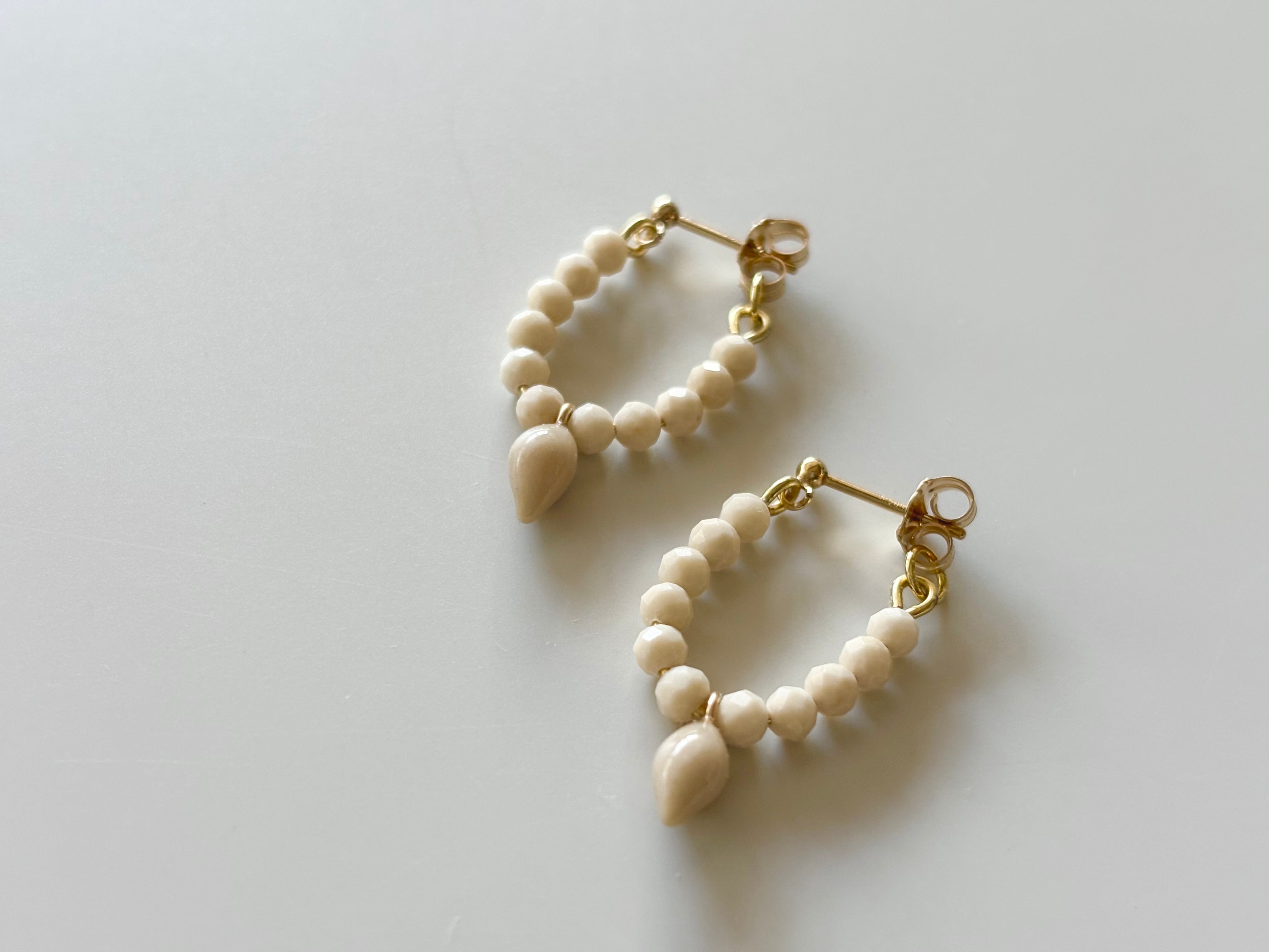着けていただい時に耳たぶに沿って散らばる繊細な天然石のビーズの粒が特徴です。