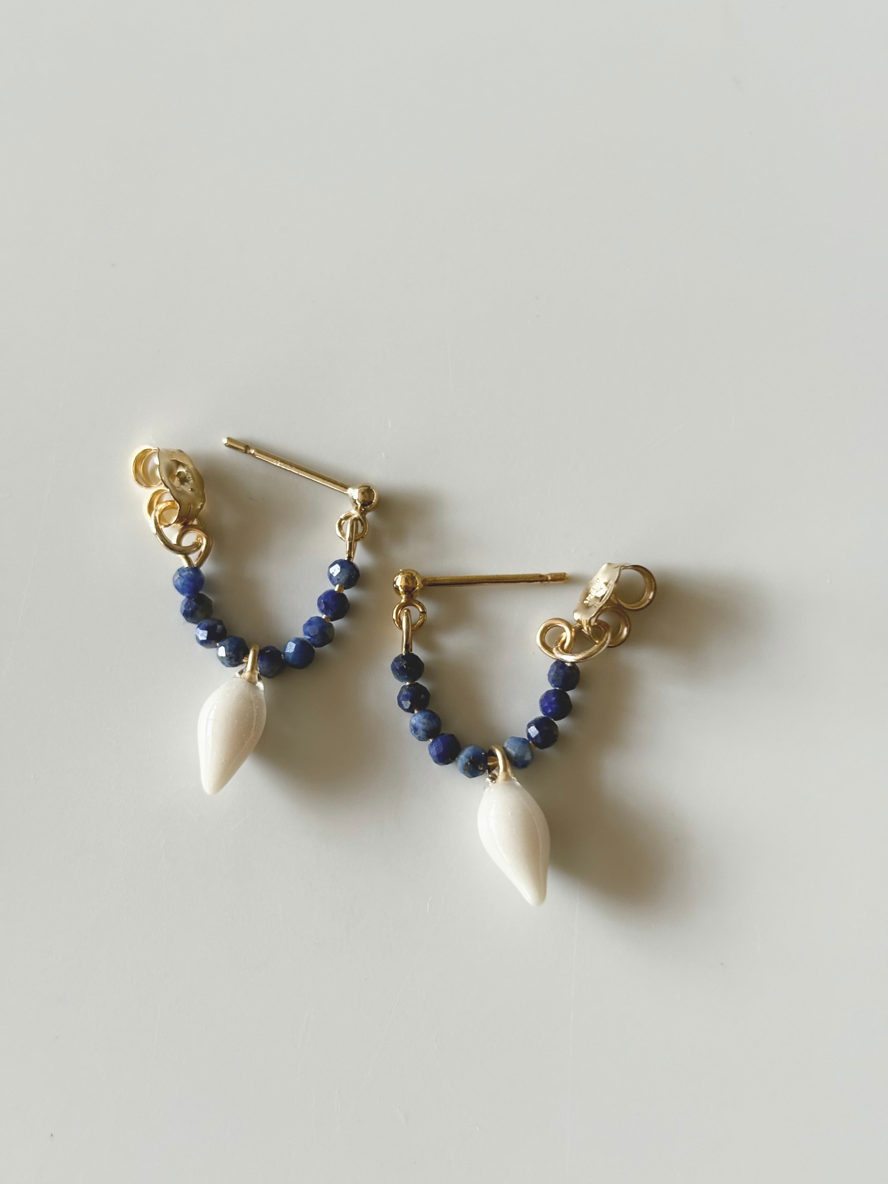 土や鉱石などから得られた天然の顔料を使って色付けした本物のユーカリの実に、天然石のラピスラズリのビーズを合わせシリーズです。