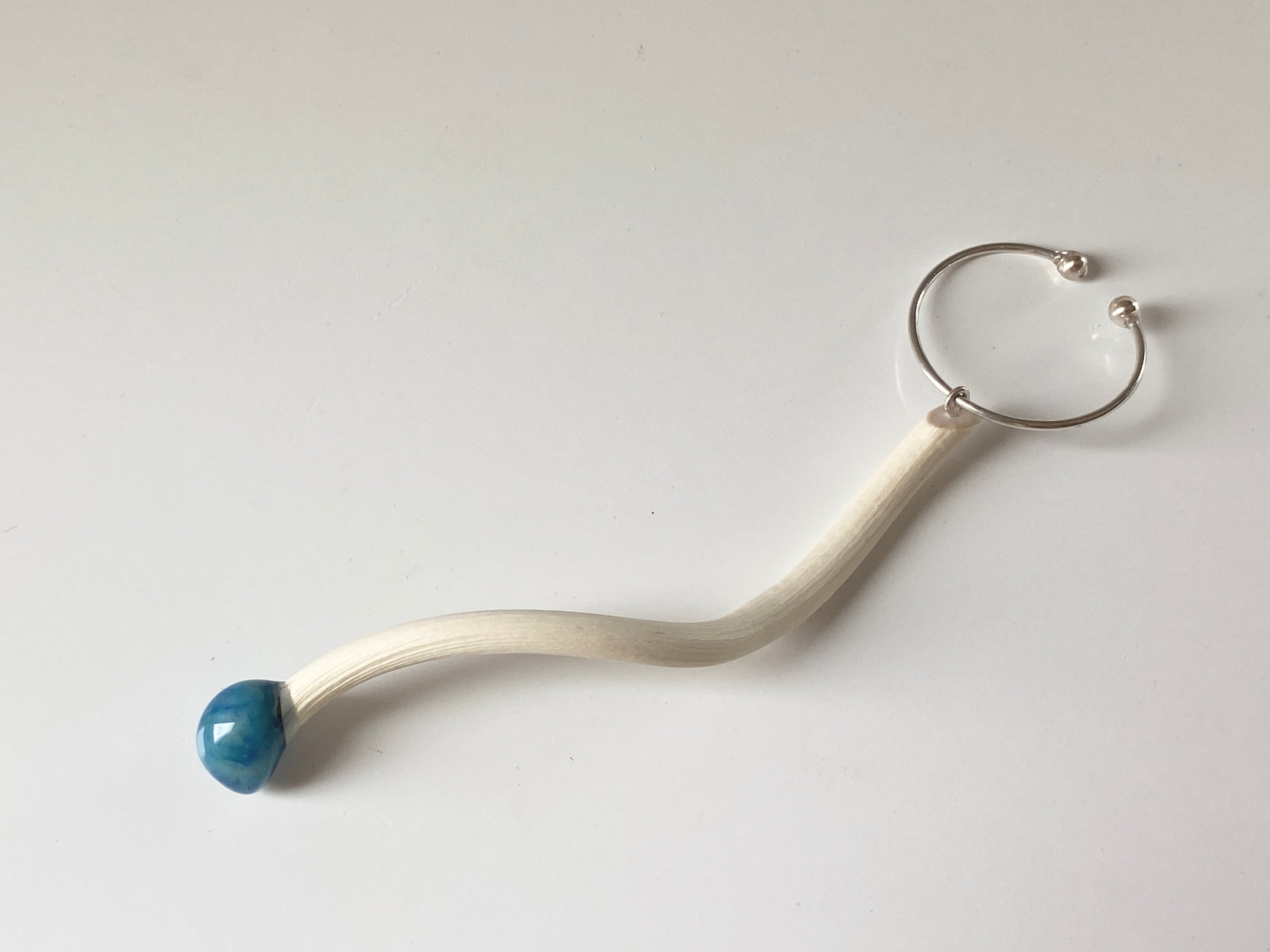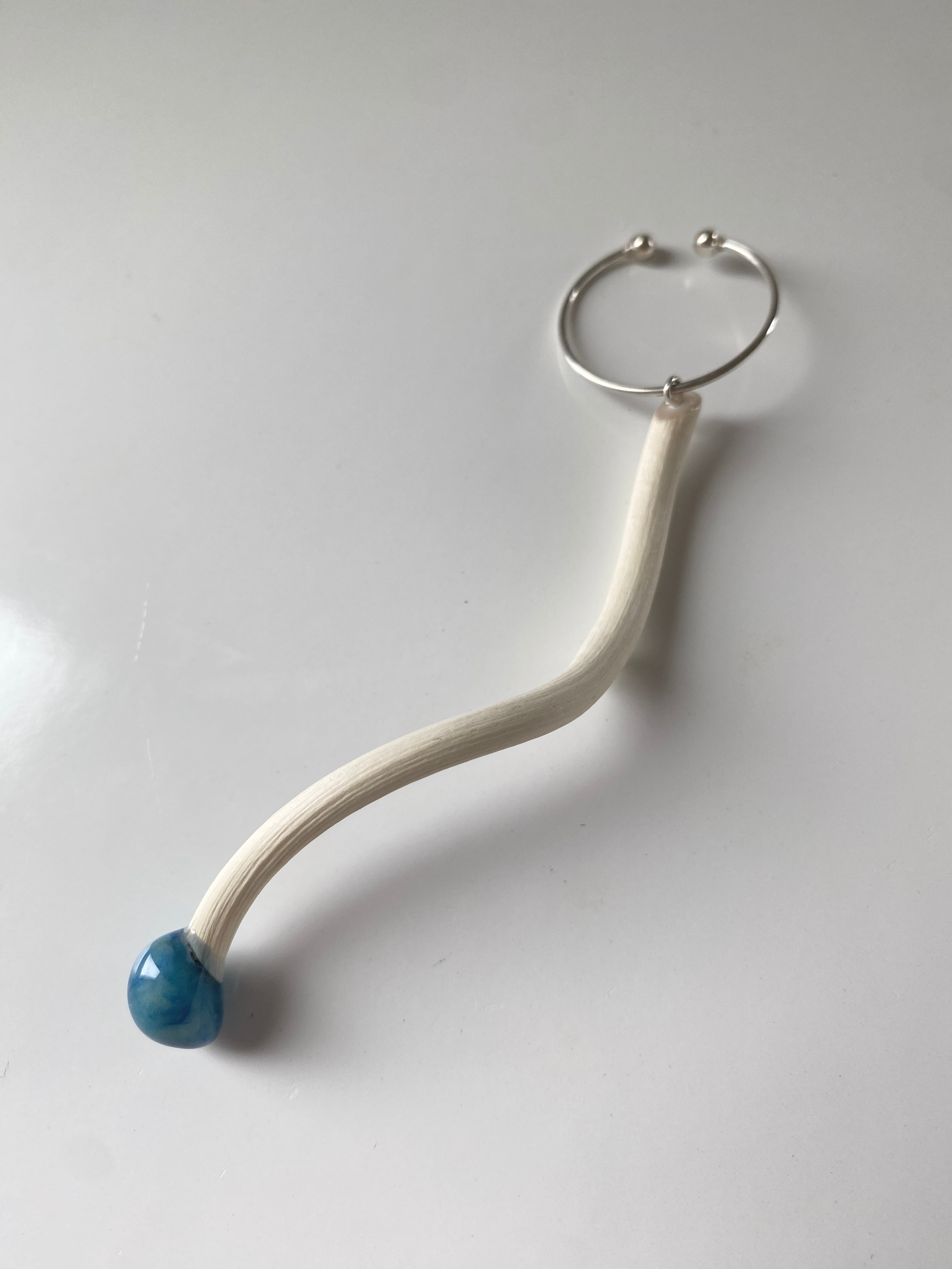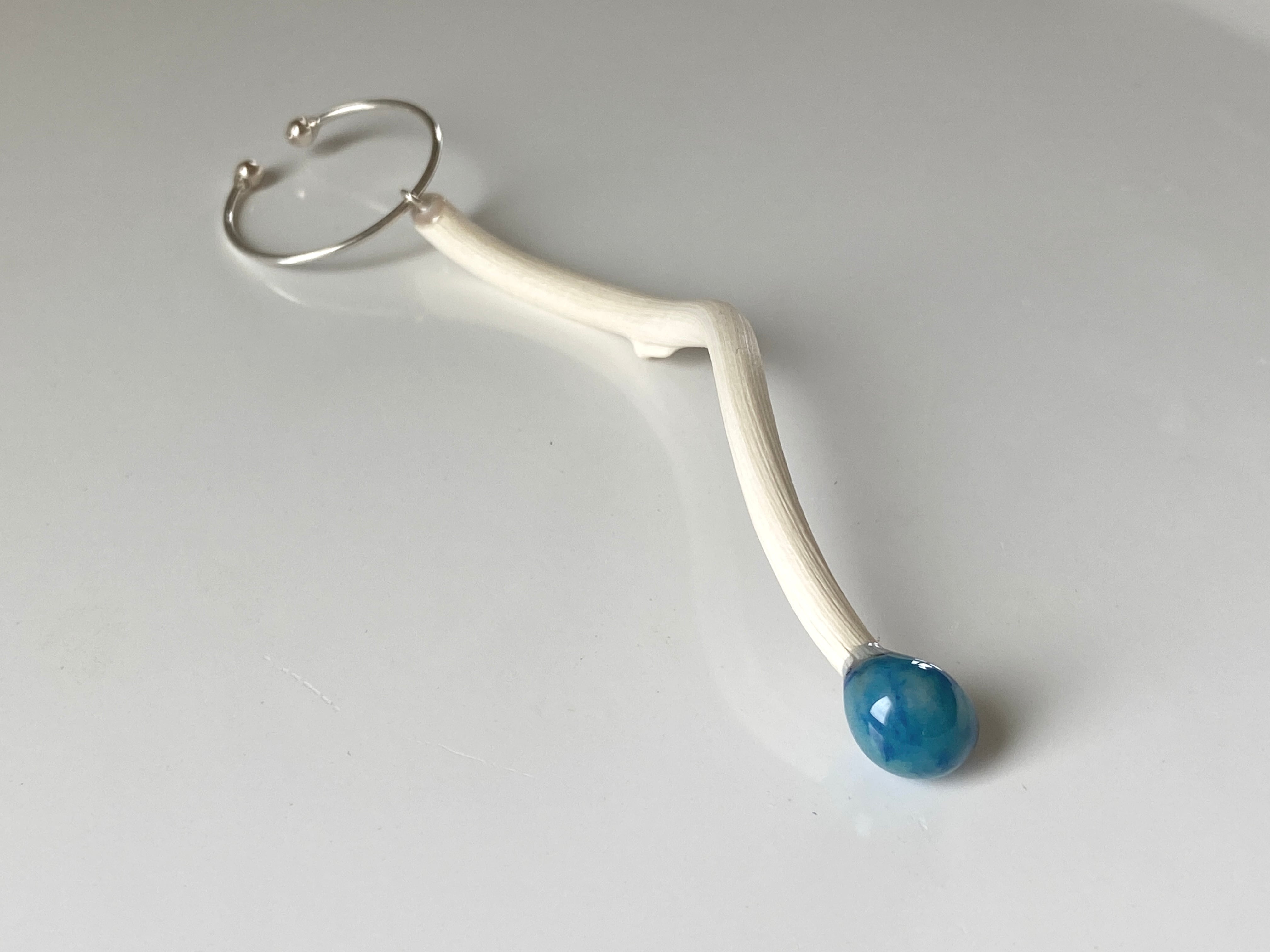 漂白をしたキウイの蔓を組み合わせて制作をしたイヤーカフ です。